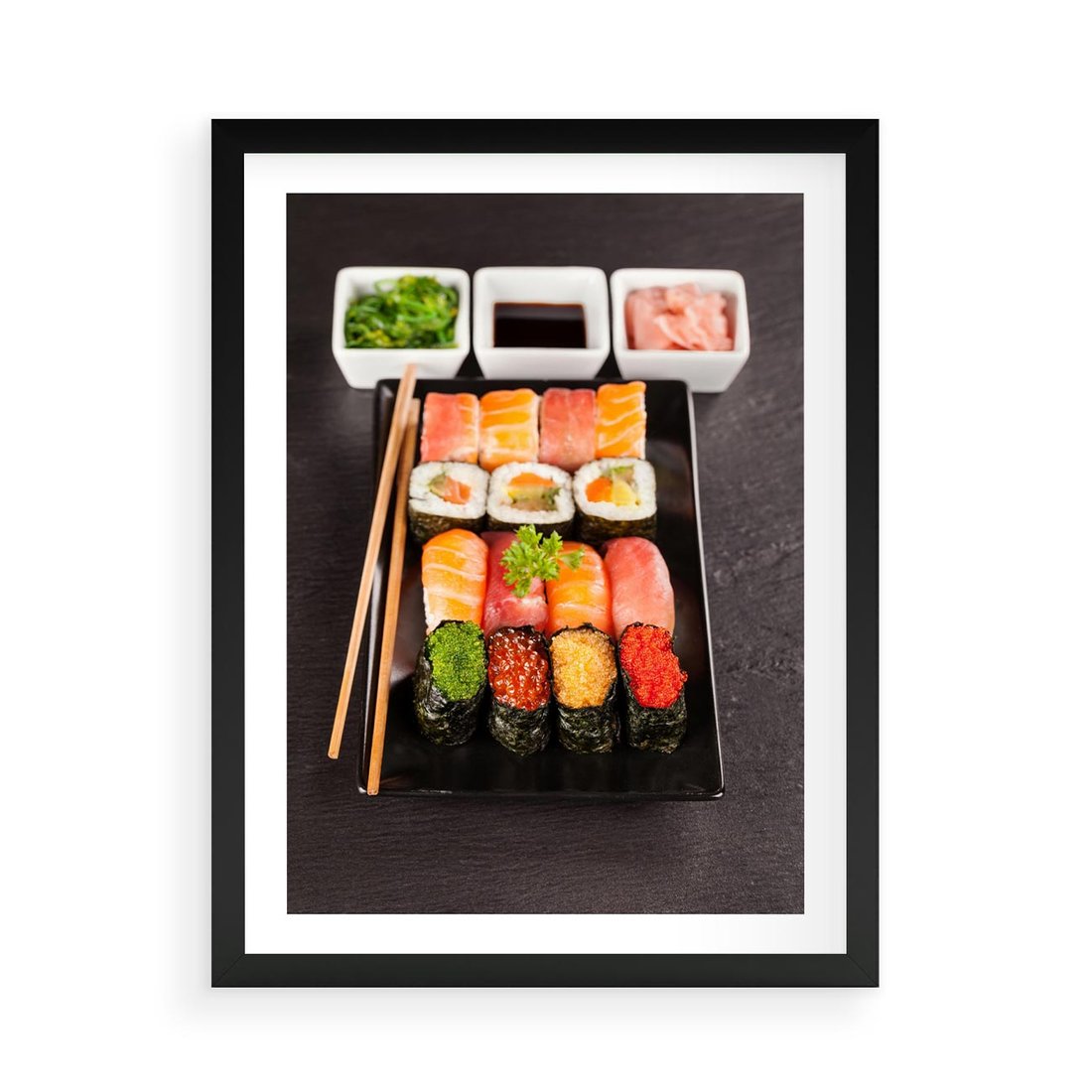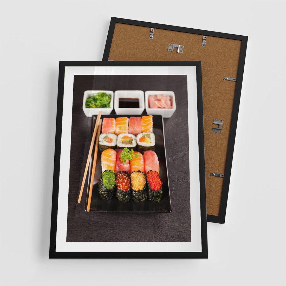Plakat w ramie 50x70 - Kulinarne podróże do Japonii - sushi, japonia - rama czarna