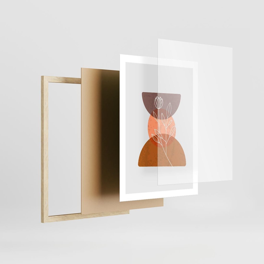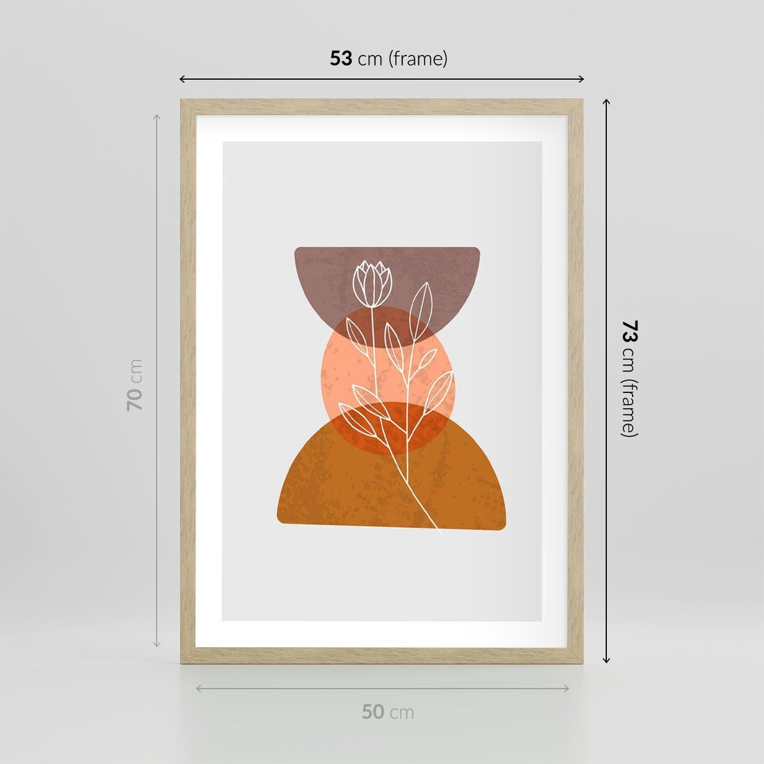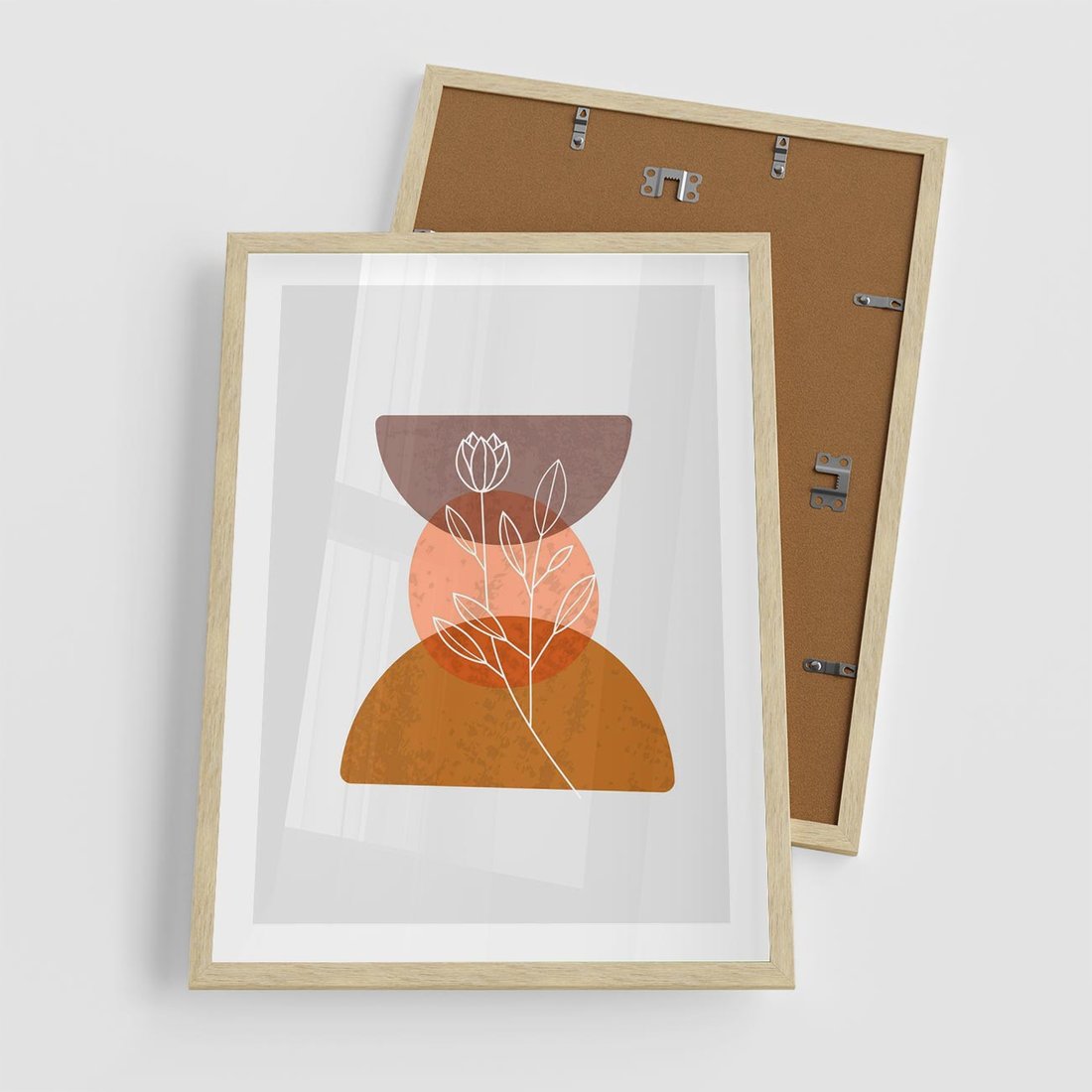 Plakat w ramie 50x70 - Kwiatowa Akwarela - akwarelowe kształty, brąz - rama drewno