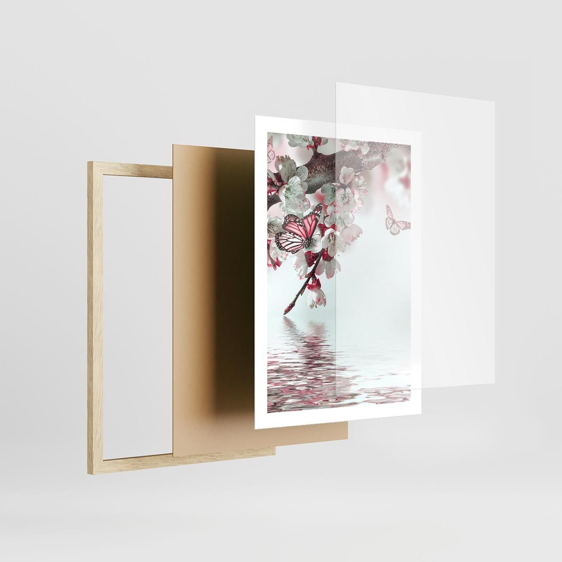 - Plakat w ramie 50x70 - Kwiatowa baśń z motylami