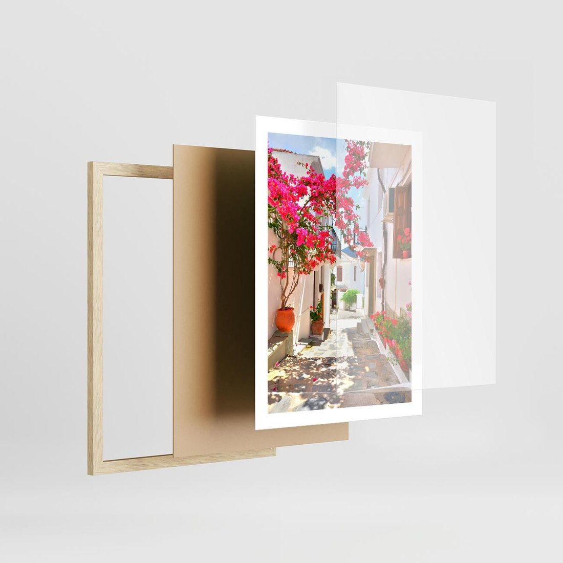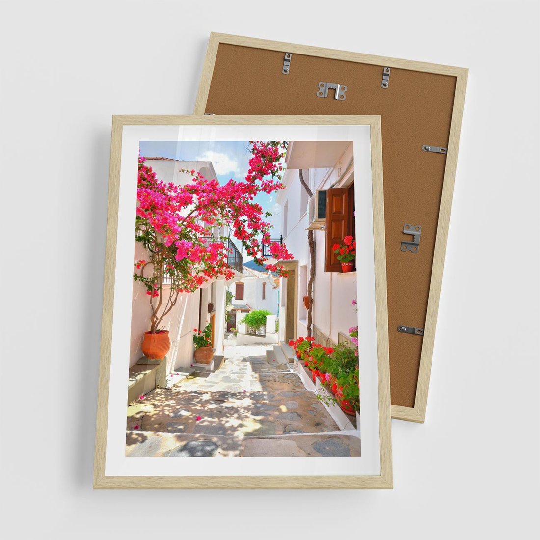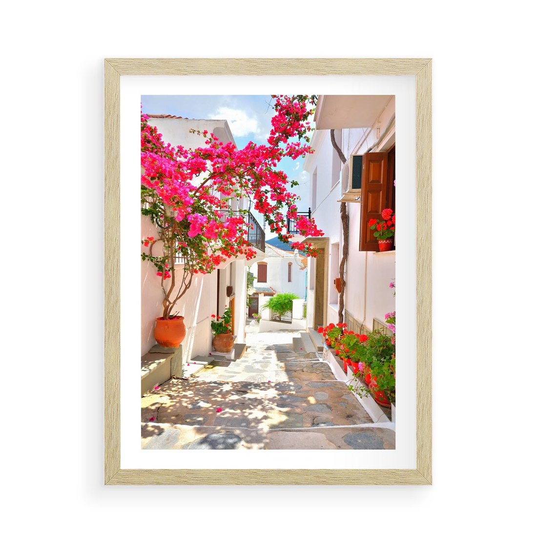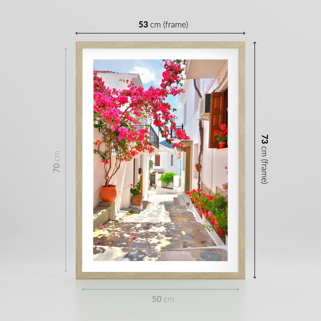 Plakat w ramie 50x70 - Kwiatowa uliczka wakacji - kwiaty, uliczka - rama drewno