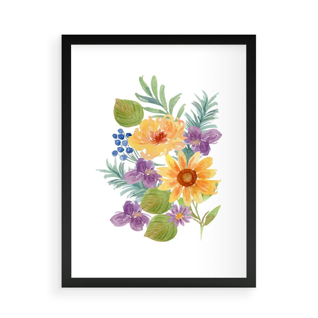 Plakat w ramie 50x70 - Kwiatowe Inspiracje - akwarelowe polne kwiaty, minimalistyczny plakat - rama czarna