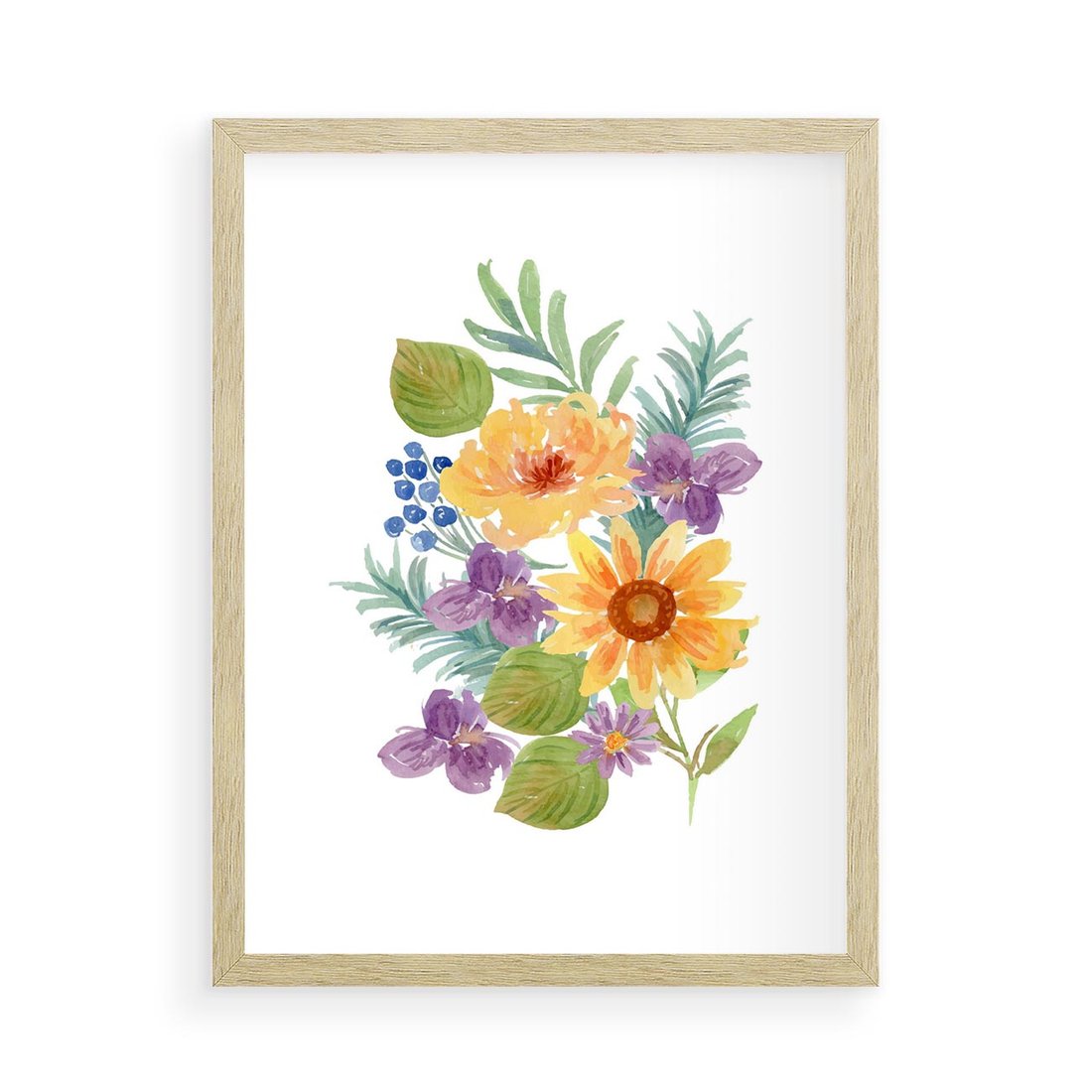 Plakat w ramie 50x70 - Kwiatowe Inspiracje - akwarelowe polne kwiaty, minimalistyczny plakat - rama drewno