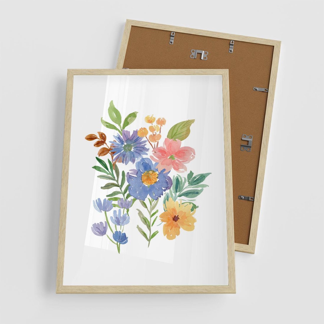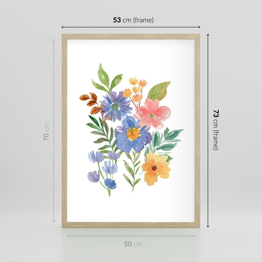 Plakat w ramie 50x70 - Kwiatowe Opowieści - akwarelowe polne kwiaty, minimalistyczna sztuka - rama drewno