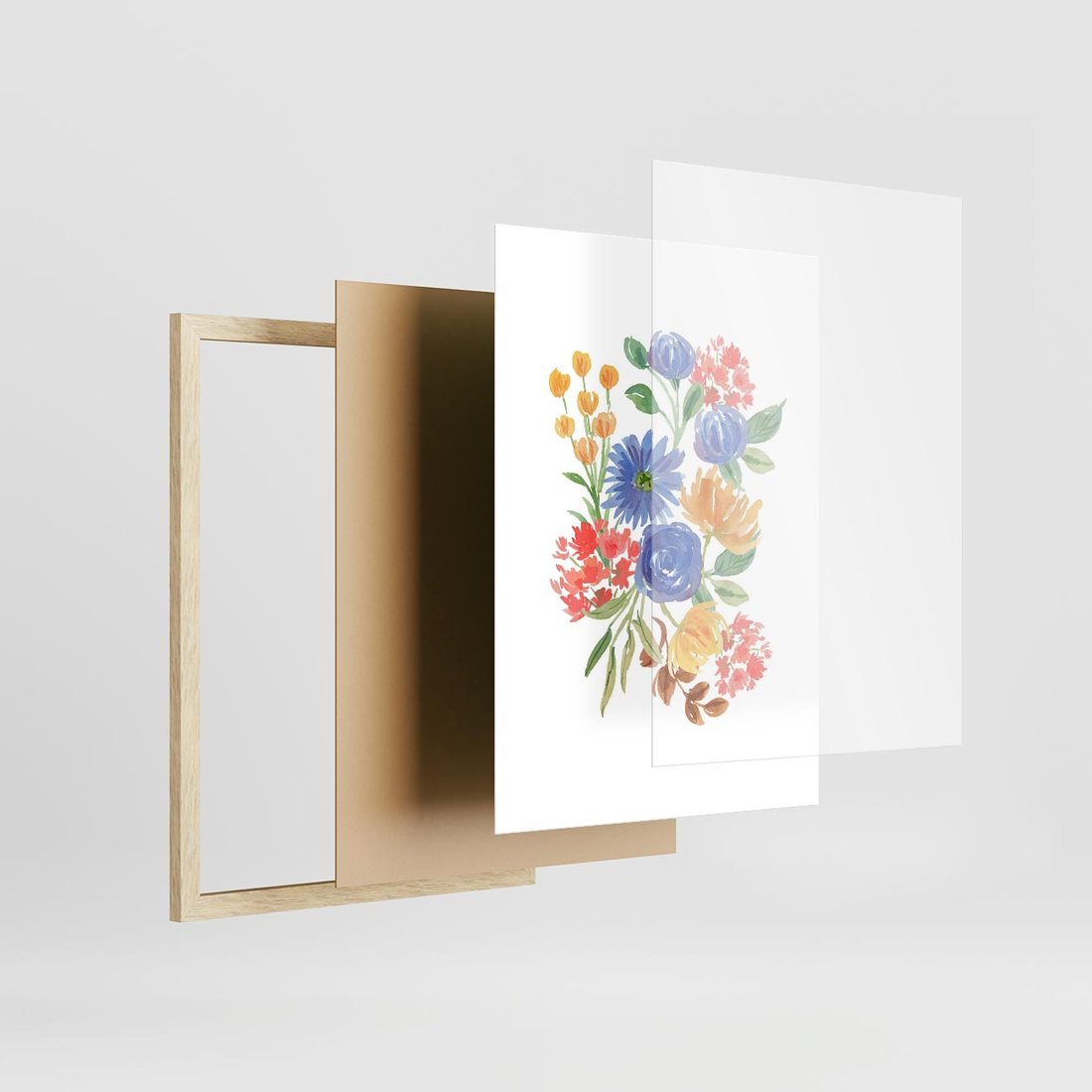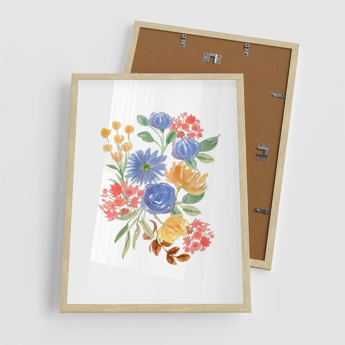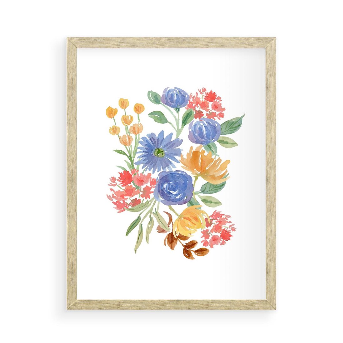 Plakat w ramie 50x70 - Kwiatowe Światło - akwarelowe kwiaty, bukiet - rama drewno