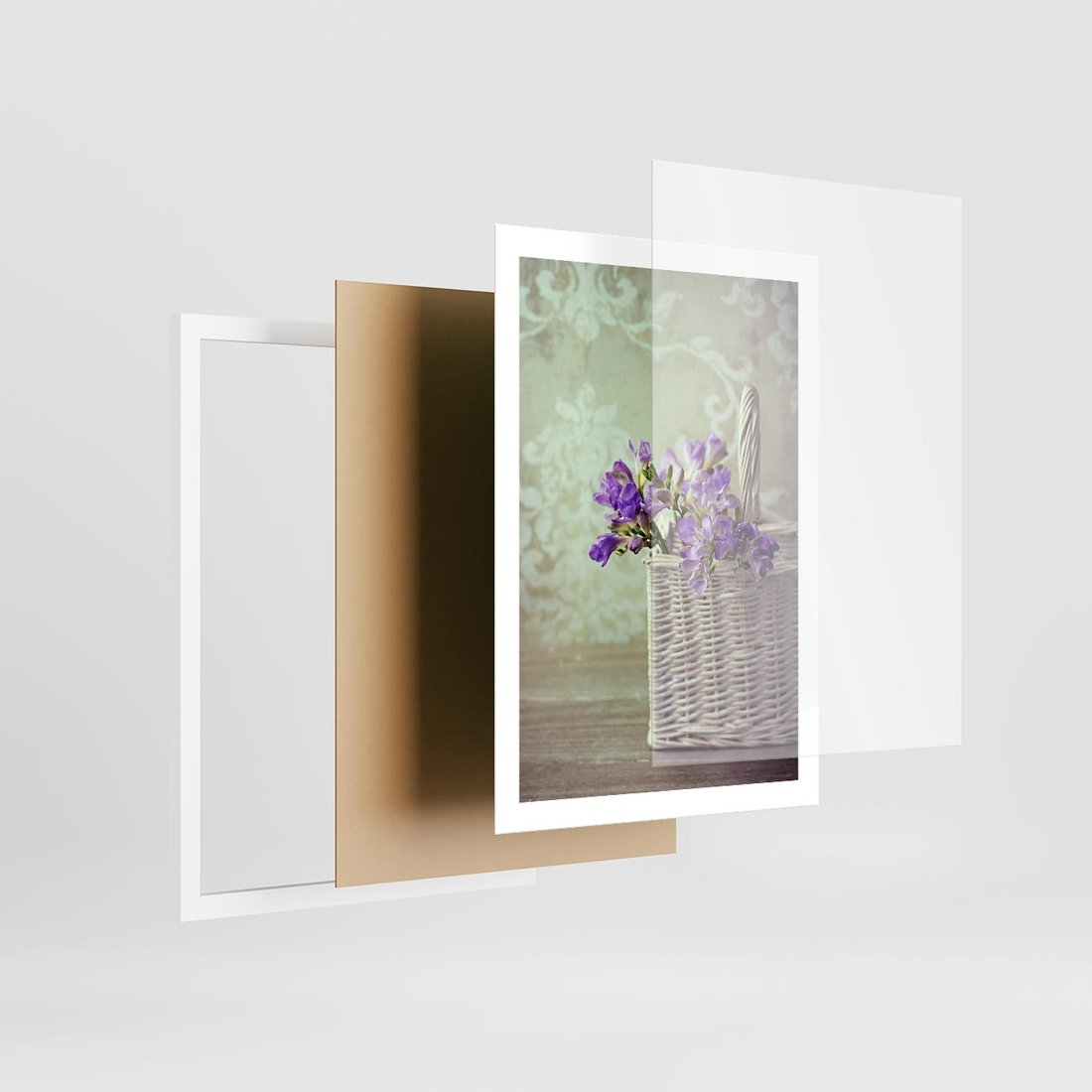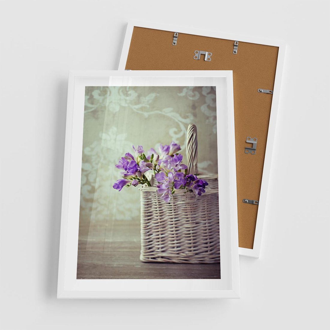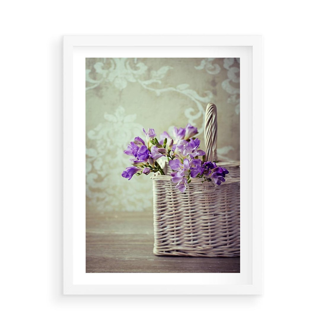 Plakat w ramie 50x70 - Kwiatowy koszyk - kwiaty, koszyk - rama biała