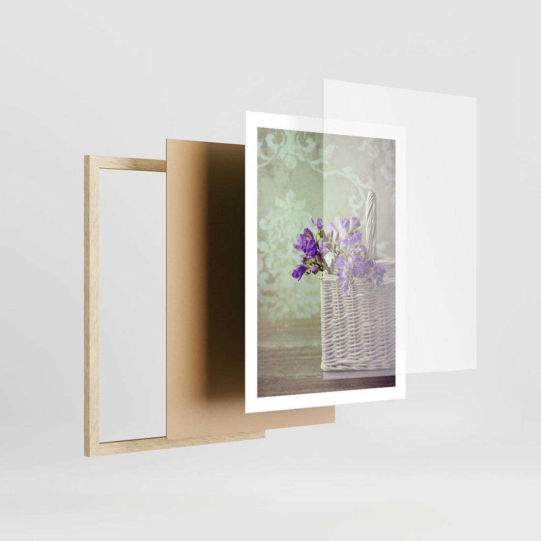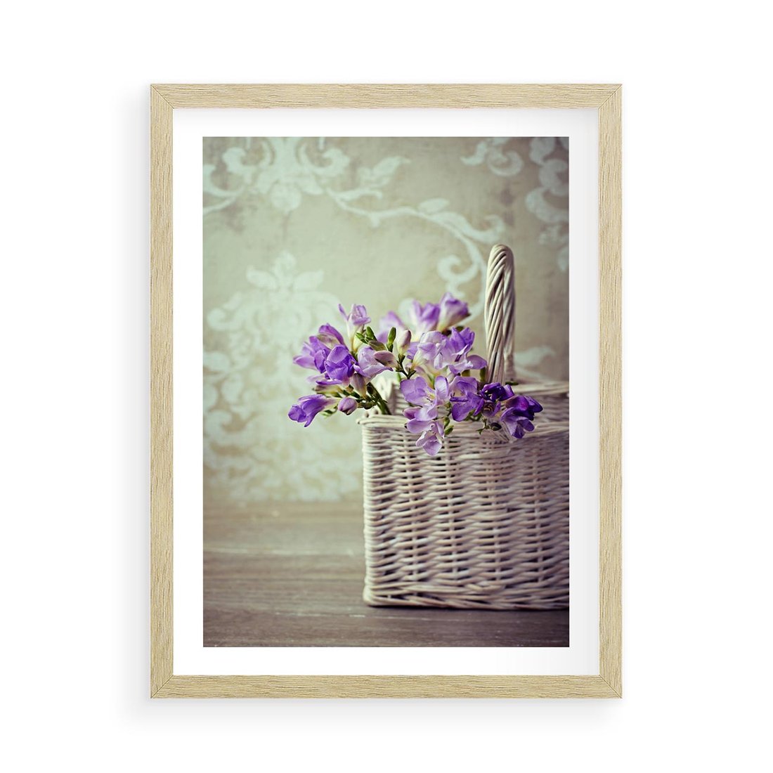 Plakat w ramie 50x70 - Kwiatowy koszyk - kwiaty, koszyk - rama drewno