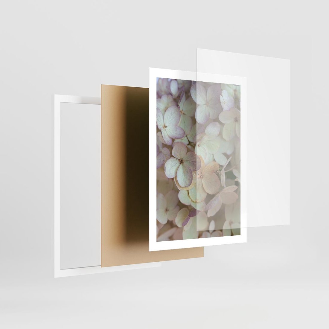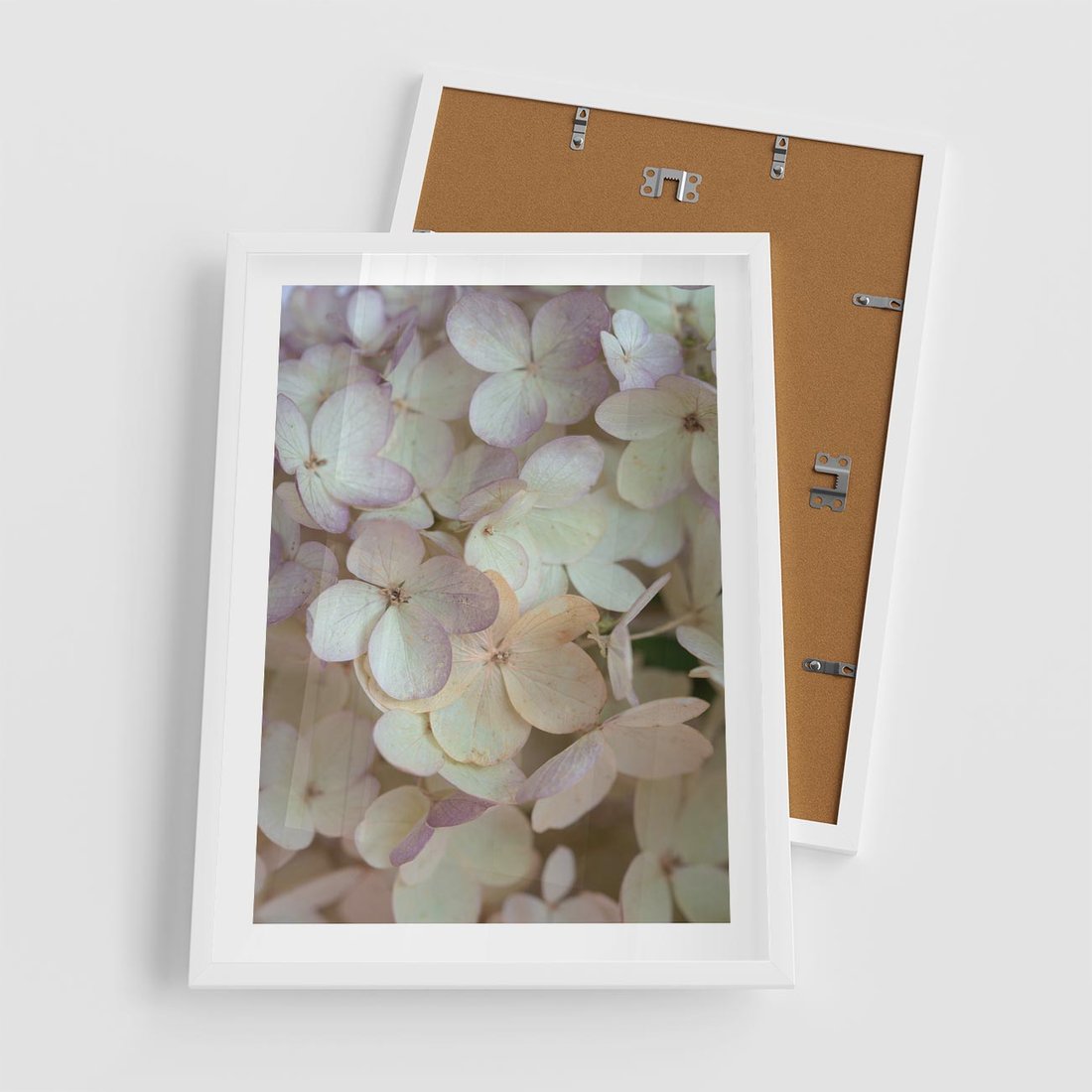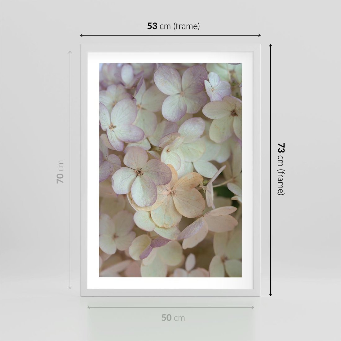 Plakat w ramie 50x70 - Kwiatowy taniec - kwiaty, hortensje - rama biała