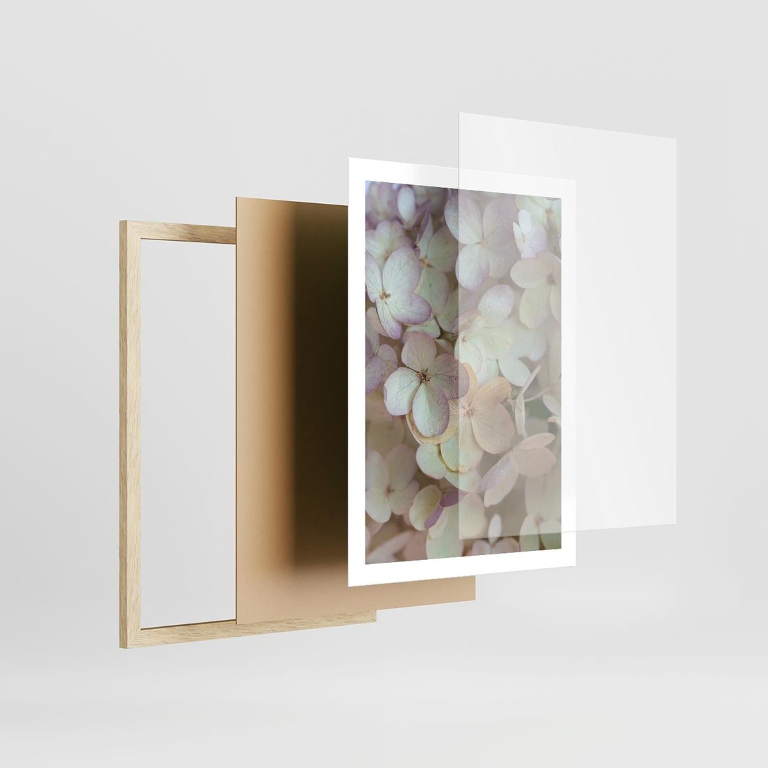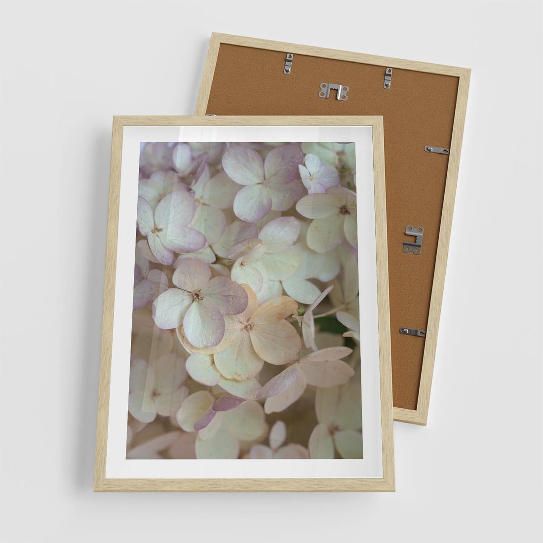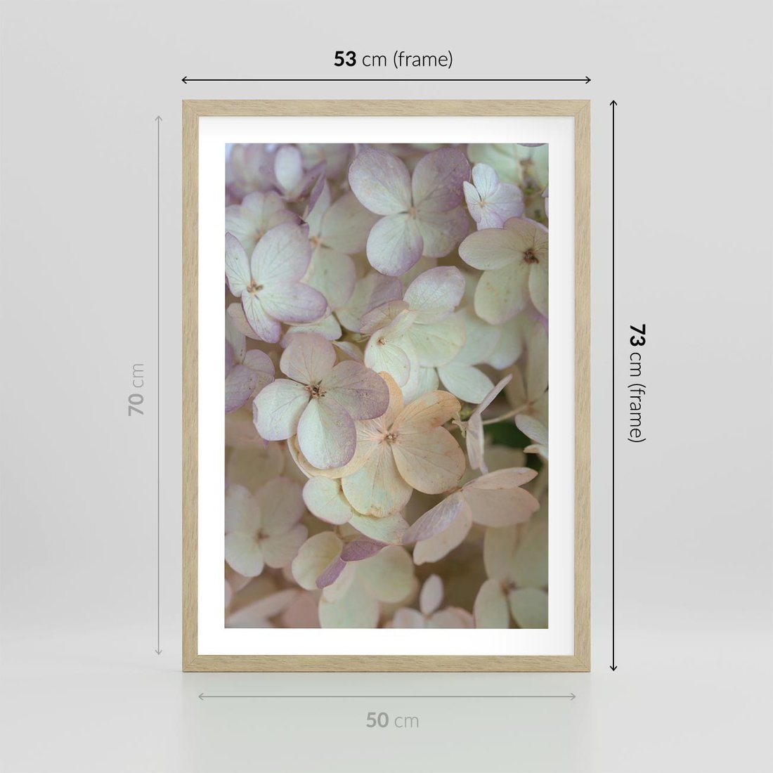Plakat w ramie 50x70 - Kwiatowy taniec - kwiaty, hortensje - rama drewno