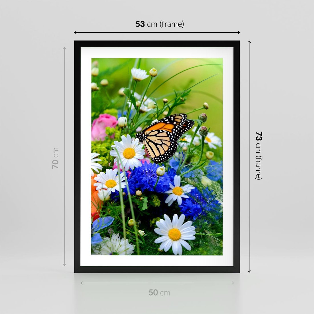 Plakat w ramie 50x70 - Kwiatowy Taniec - motyl, kwiaty - rama czarna