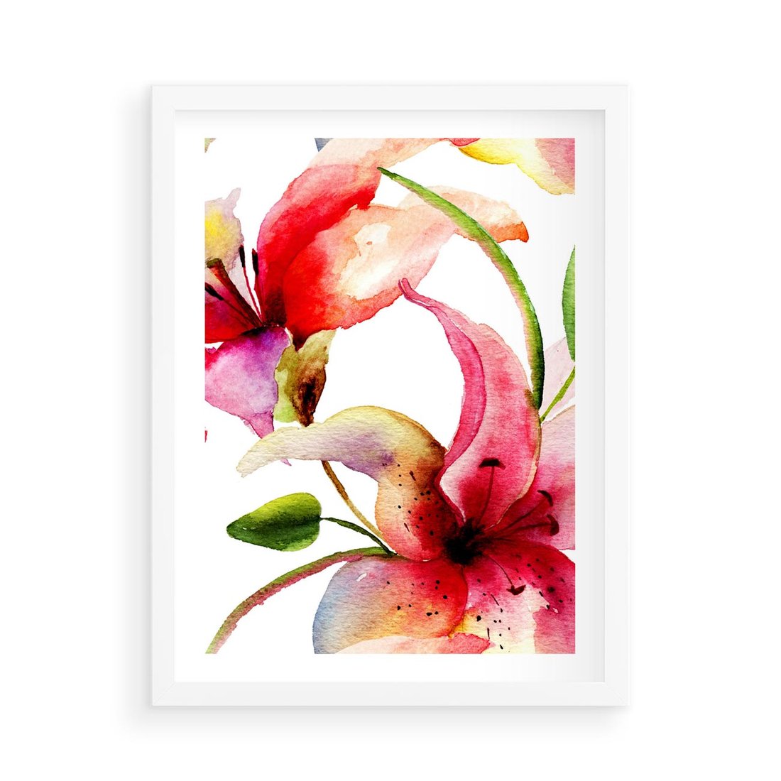 Plakat w ramie 50x70 - Kwiaty w akwareli - delikatne piękno - kwiaty, akwarela - rama biała