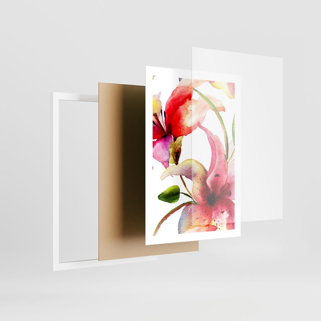 - Plakat w ramie 50x70 - Kwiaty w akwareli - delikatne piękno