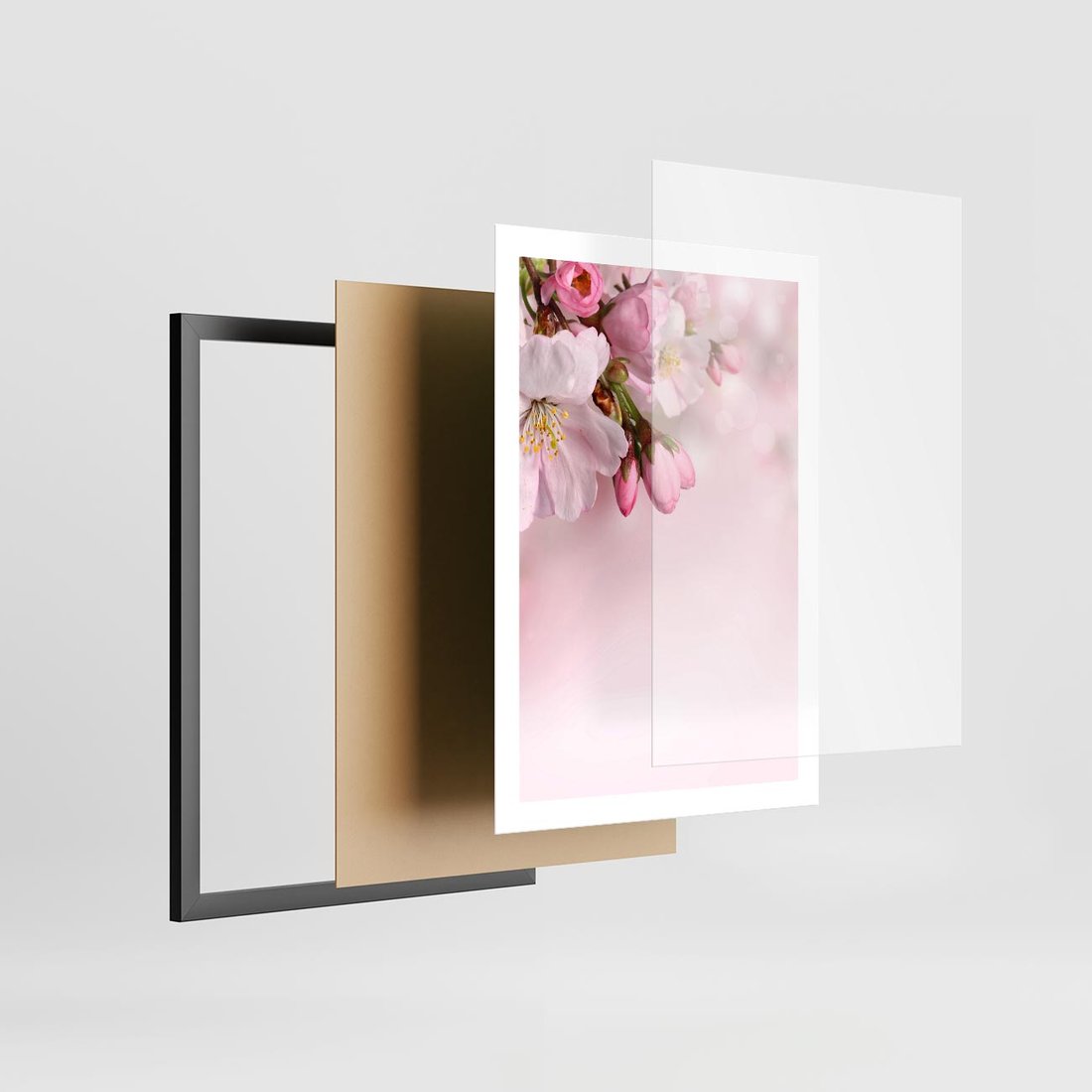 - Plakat w ramie 50x70 - Kwitnąca wiśnia: delikatność natury