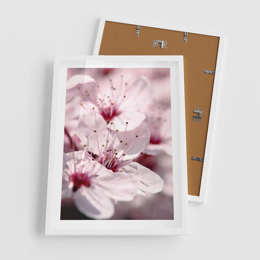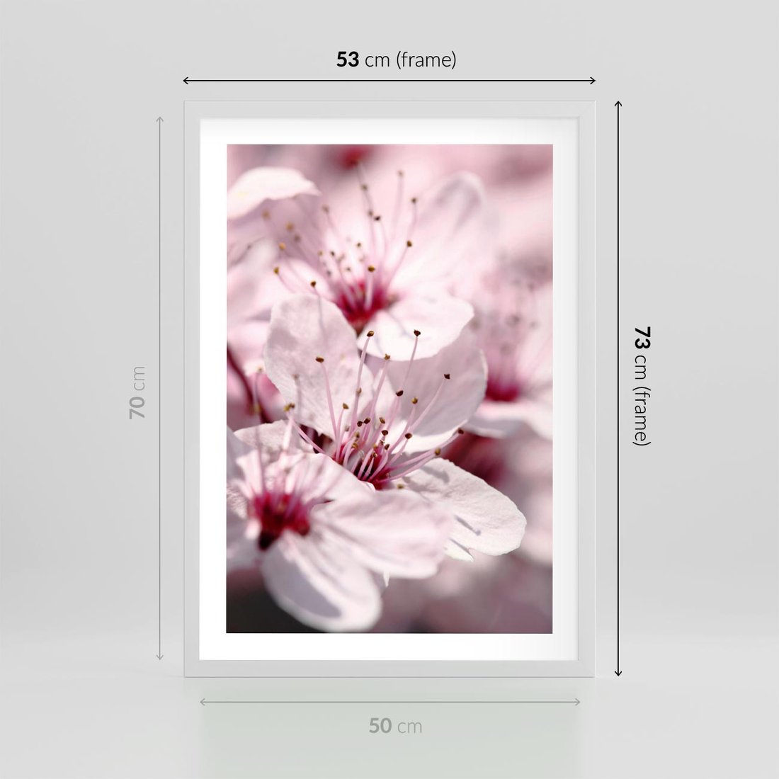 Plakat w ramie 50x70 - Kwitnąca Wiśnia - kwiaty, kwitnąca - rama biała