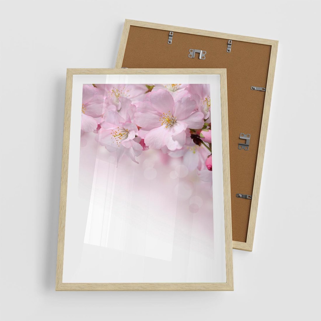 Plakat w ramie 50x70 - Kwitnąca Wiśnia - kwiaty, kwitnącej - rama drewno