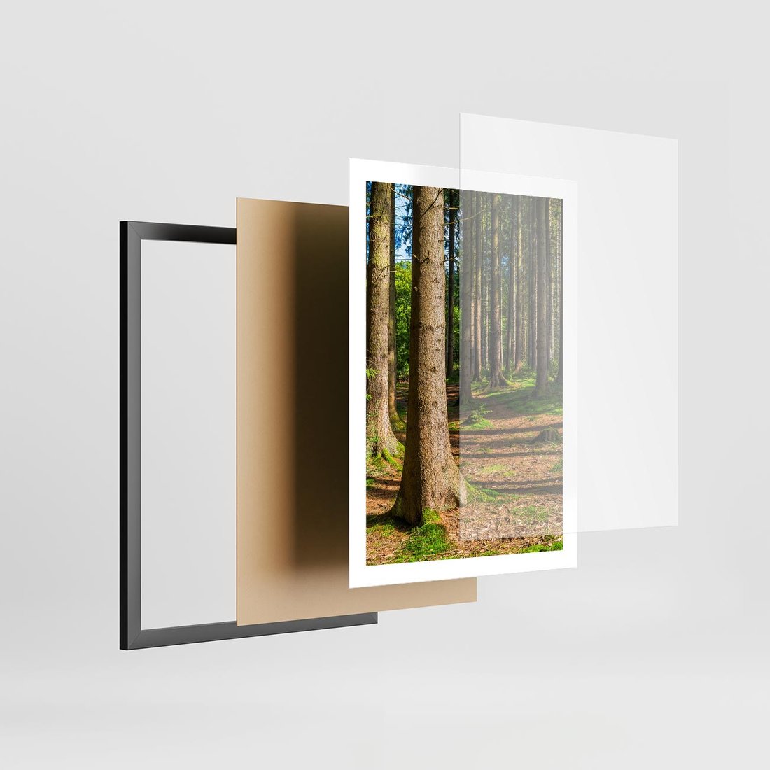 Plakat w ramie 50x70 - Las: harmonia natury - las, drzewa - rama czarna