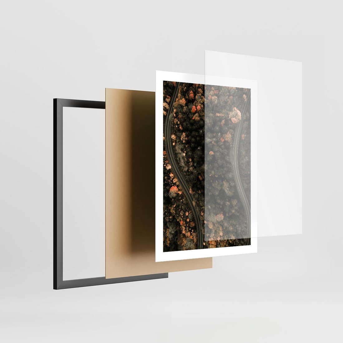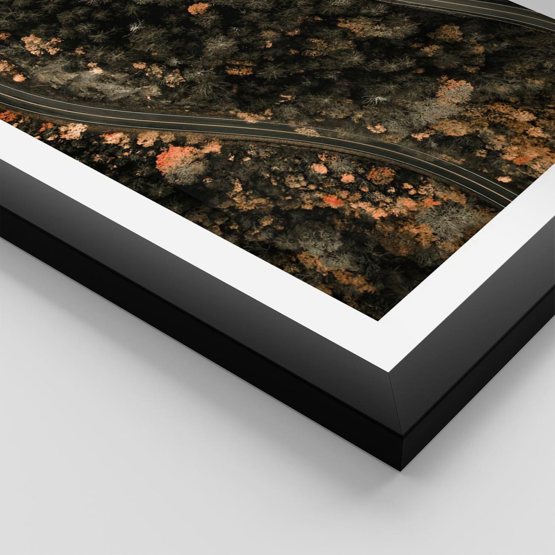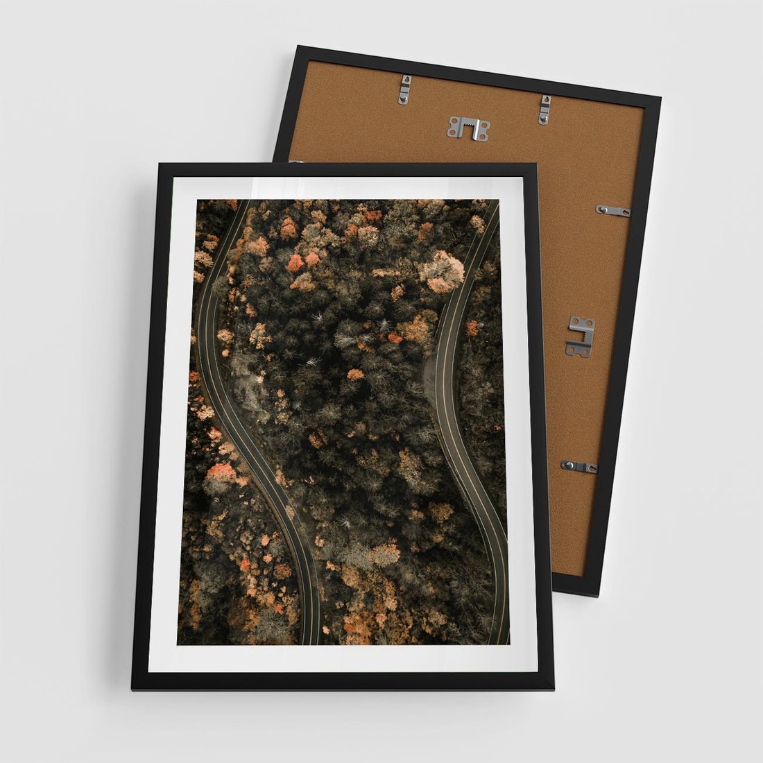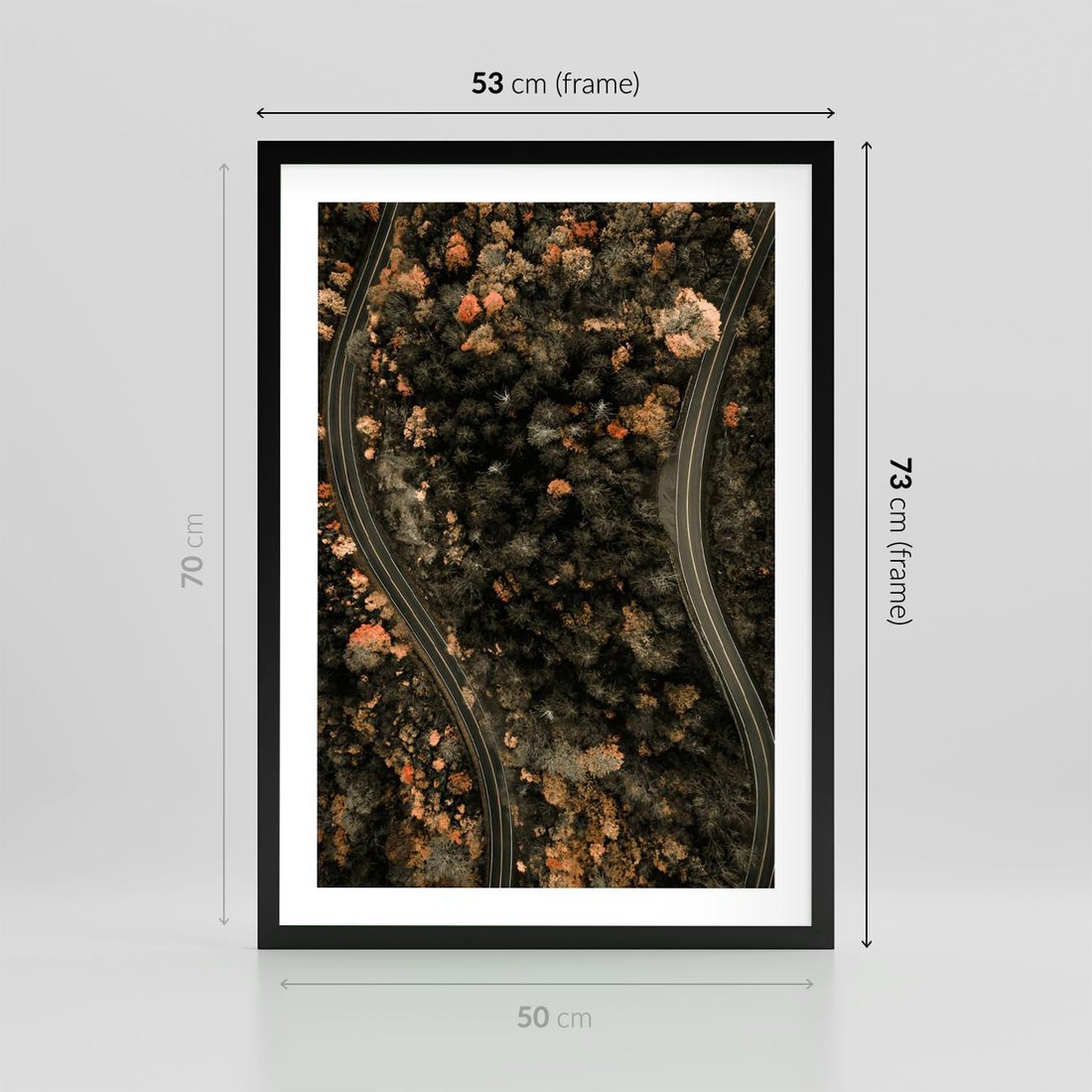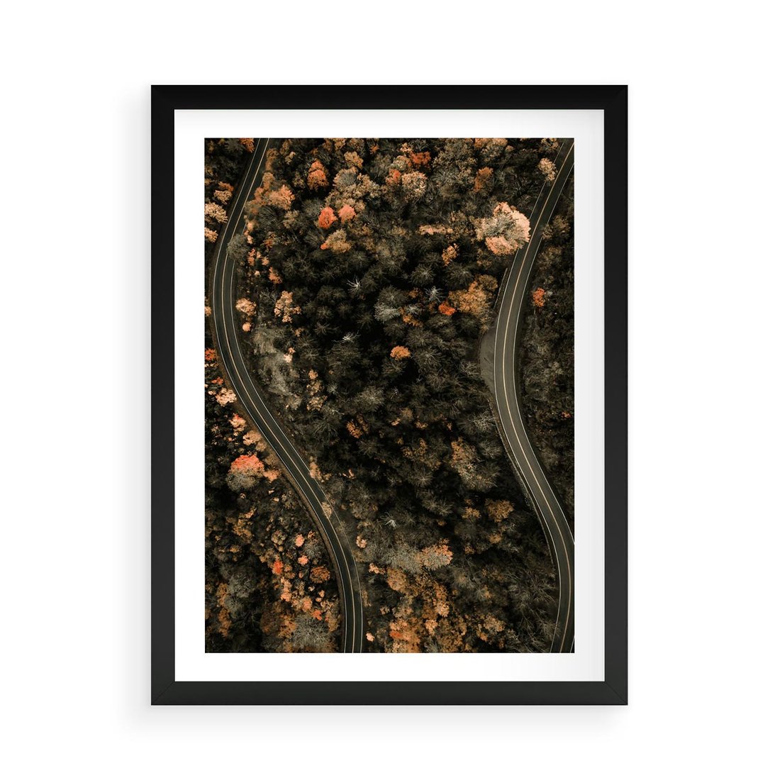 Plakat w ramie 50x70 - Las i Droga w Kolorach Jesieni - droga, ujęcie z góry - rama czarna