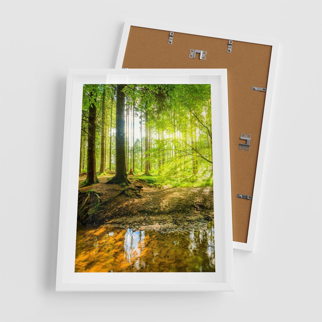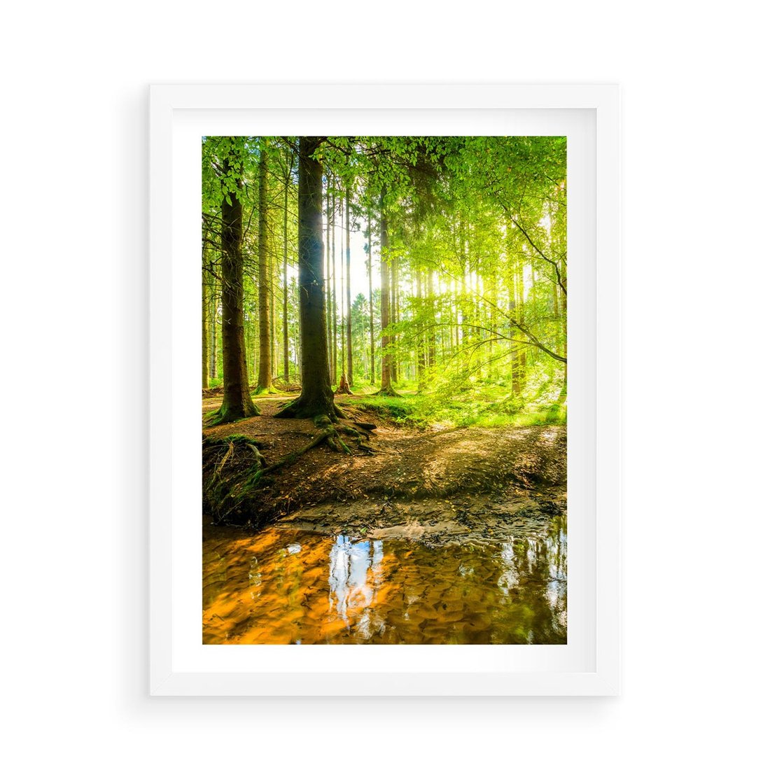 Plakat w ramie 50x70 - Las nad Wodą - las, woda - rama biała