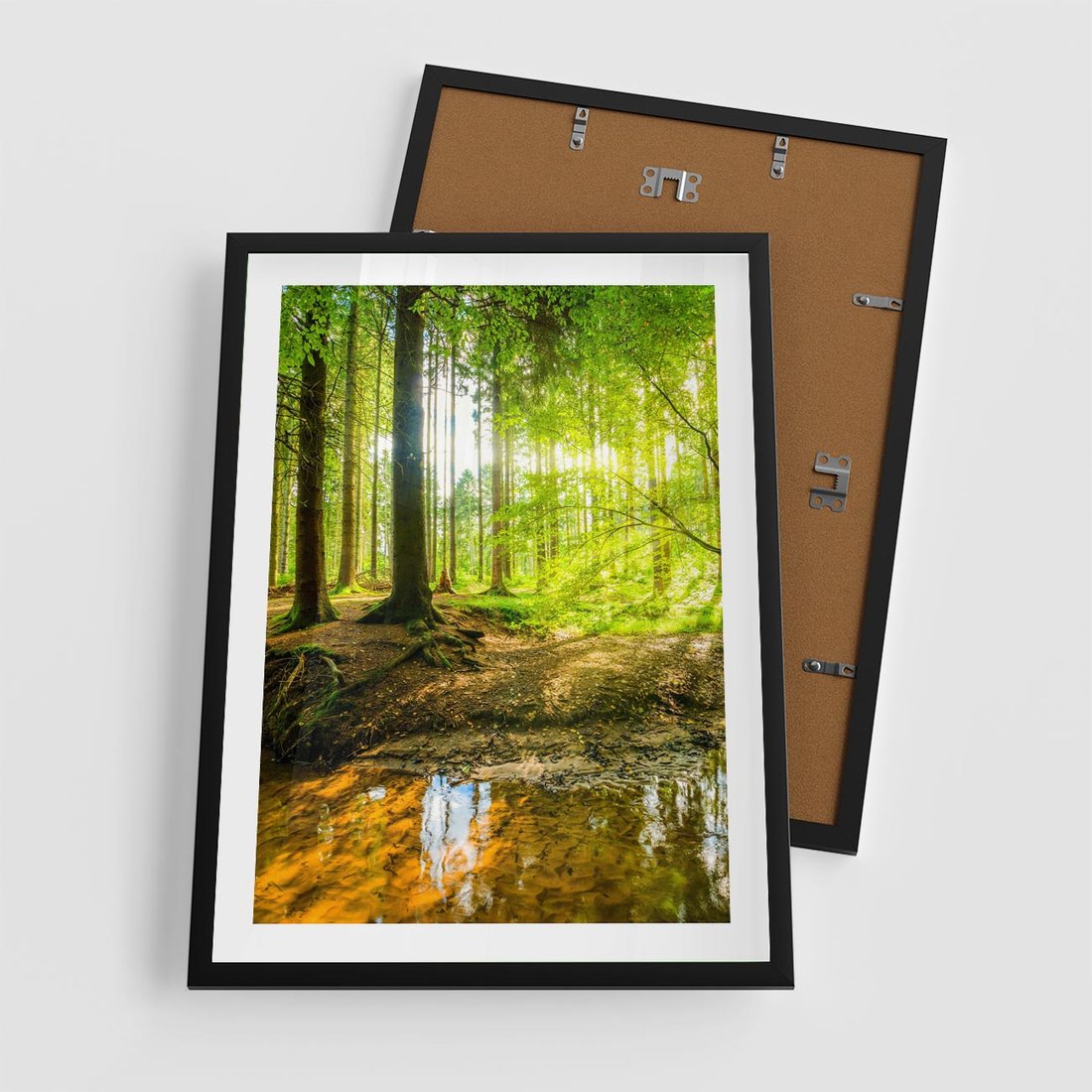 Plakat w ramie 50x70 - Las nad Wodą - las, woda - rama czarna