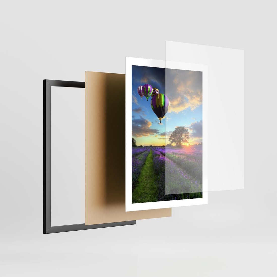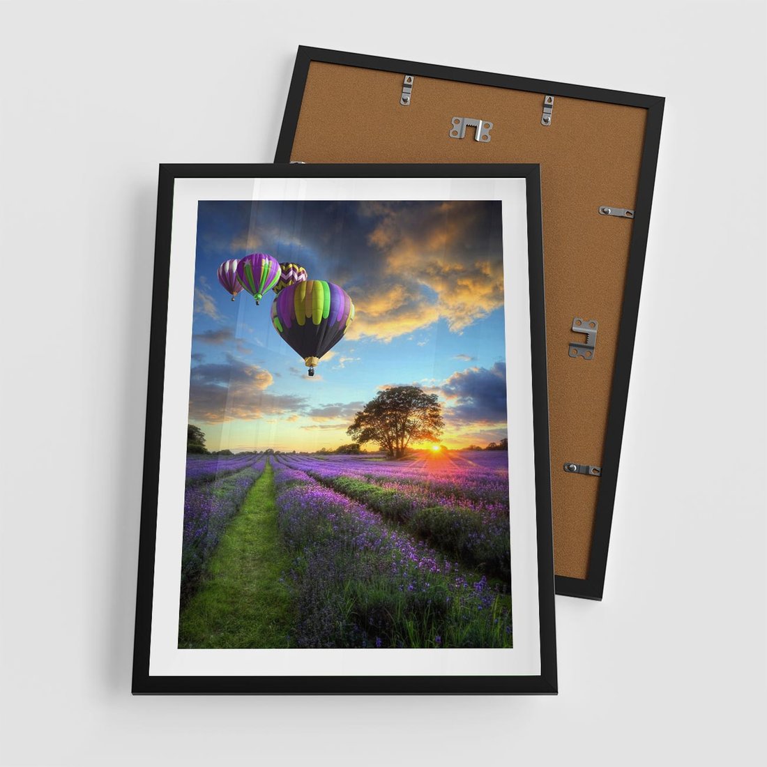 Plakat w ramie 50x70 - Lawendowe Marzenia - lawenda, balony - rama czarna
