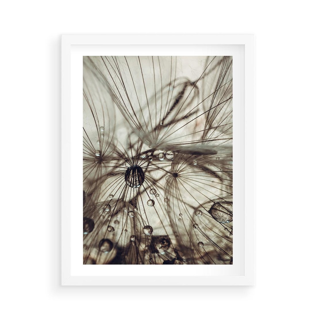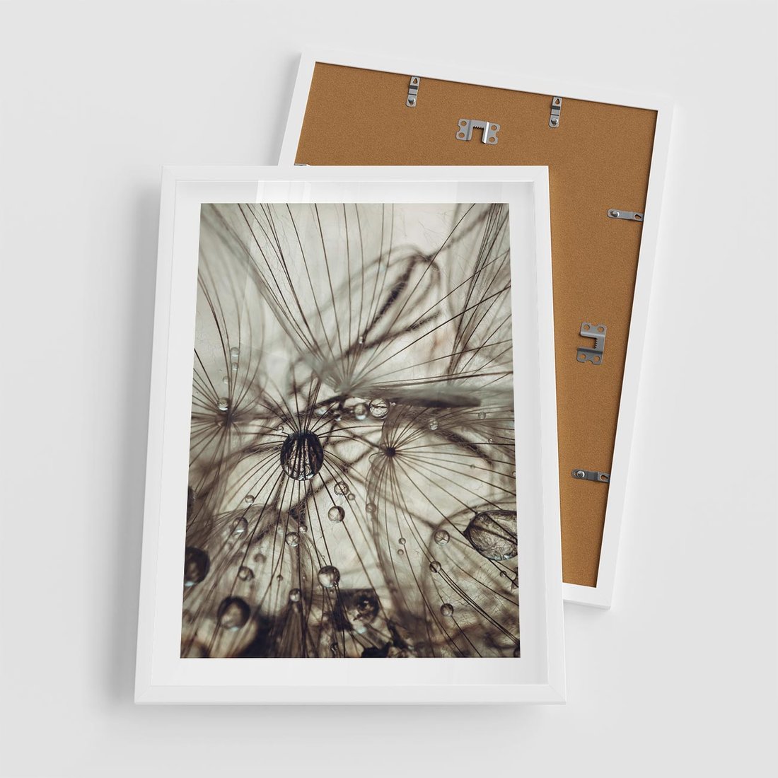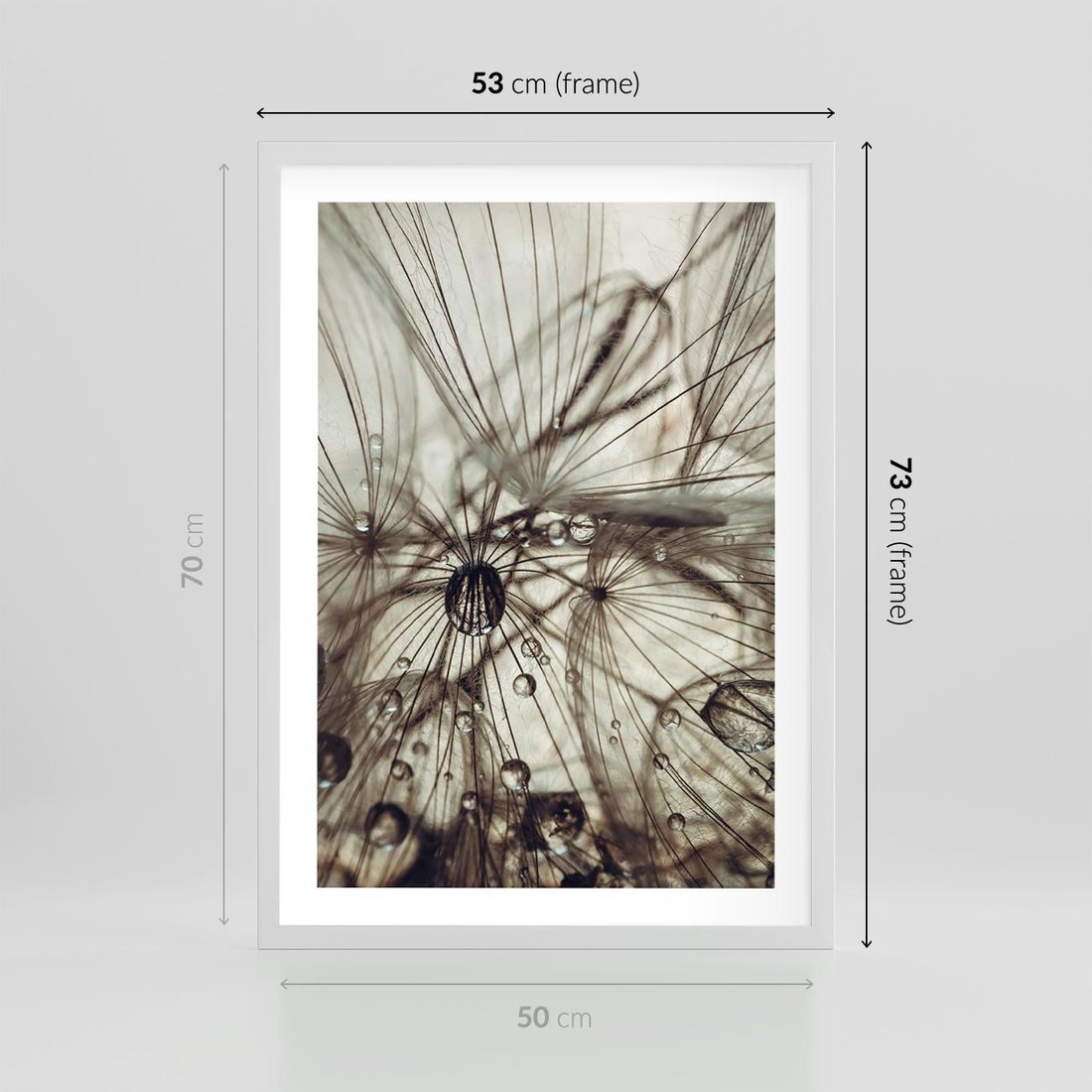 Plakat w ramie 50x70 - Lekkie dmuchawce - dmuchawce, krople - rama biała