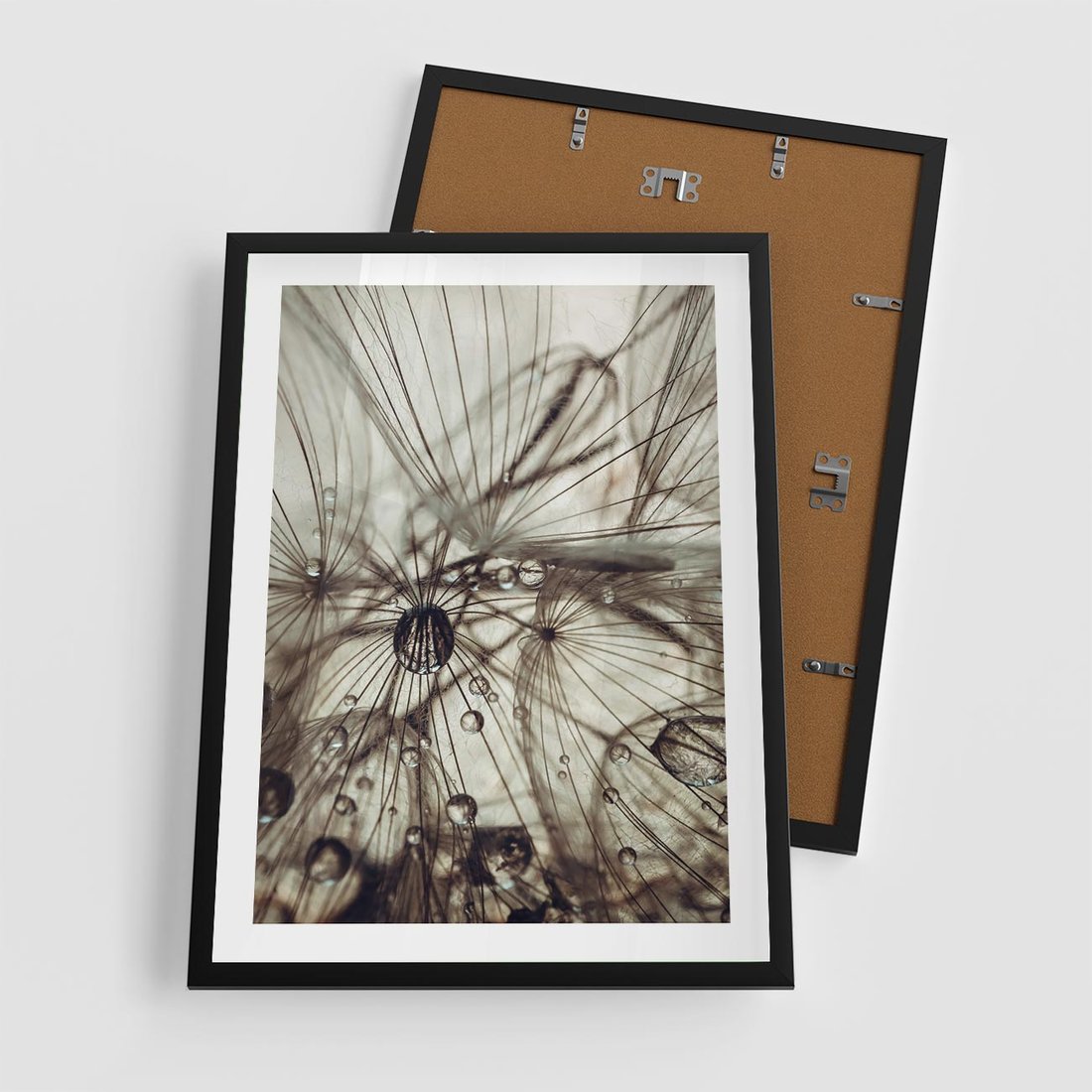 Plakat w ramie 50x70 - Lekkie dmuchawce - dmuchawce, krople - rama czarna