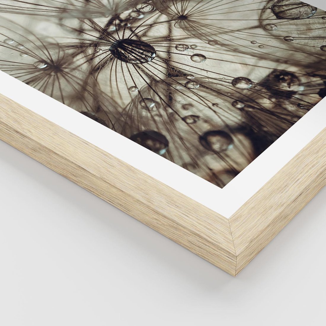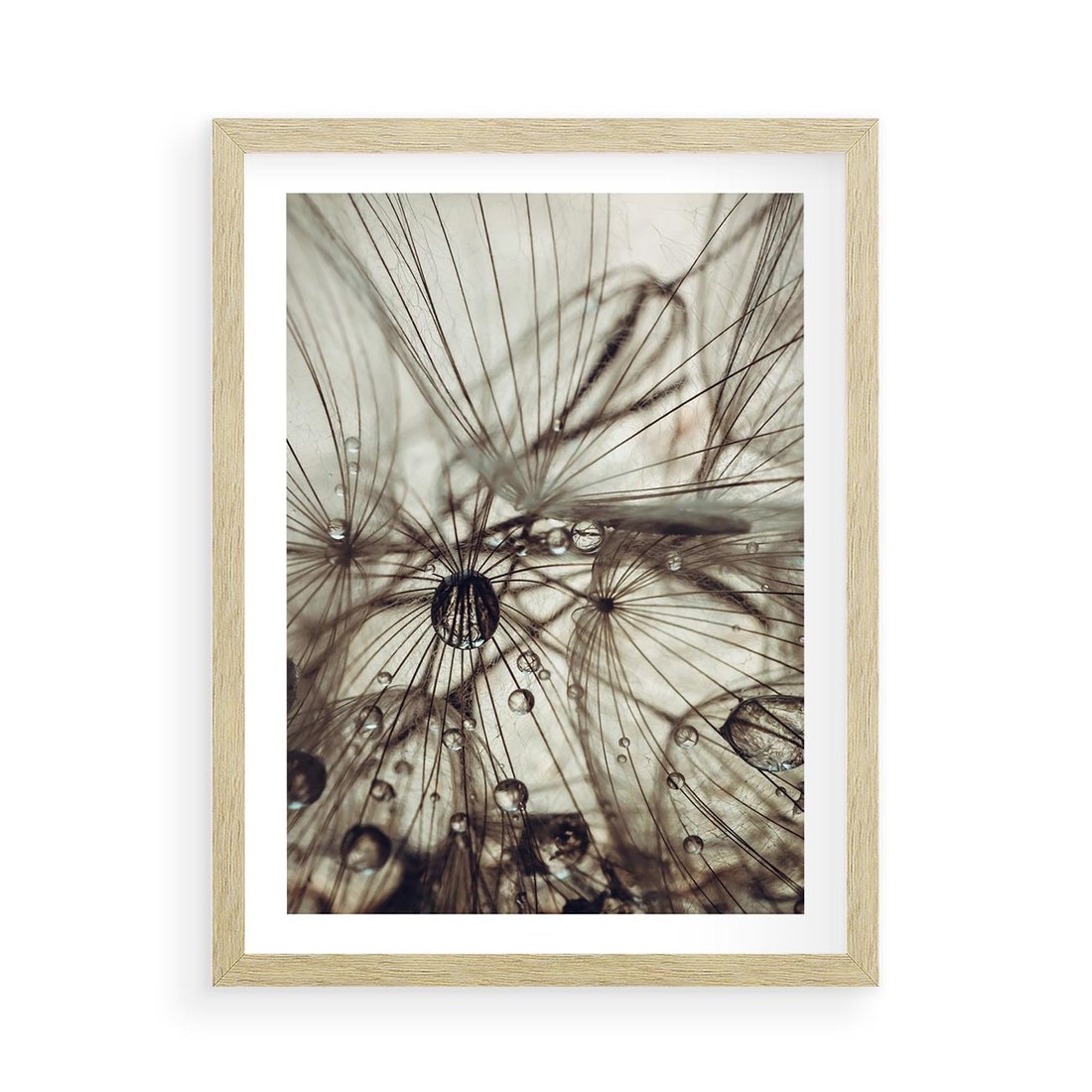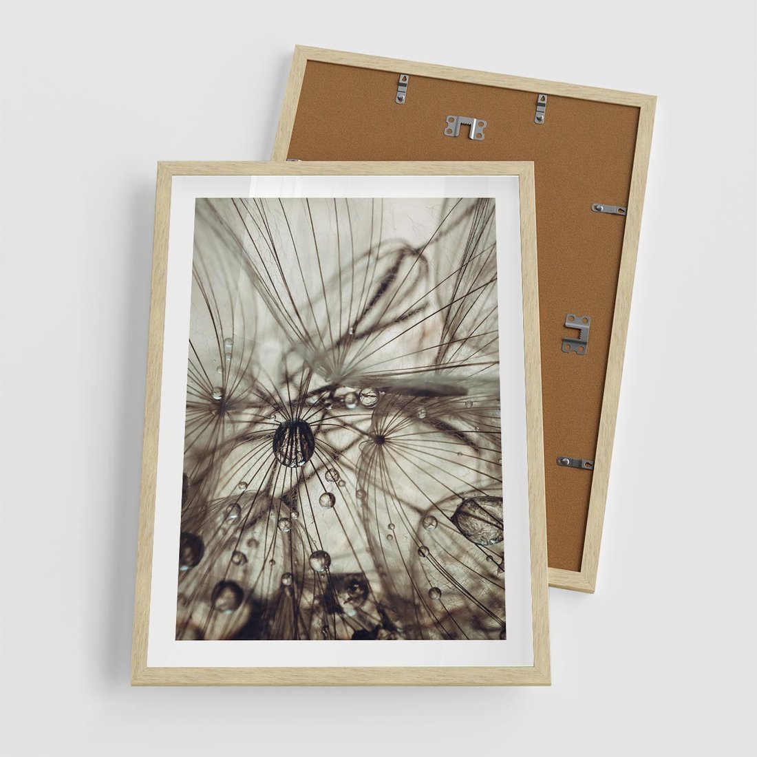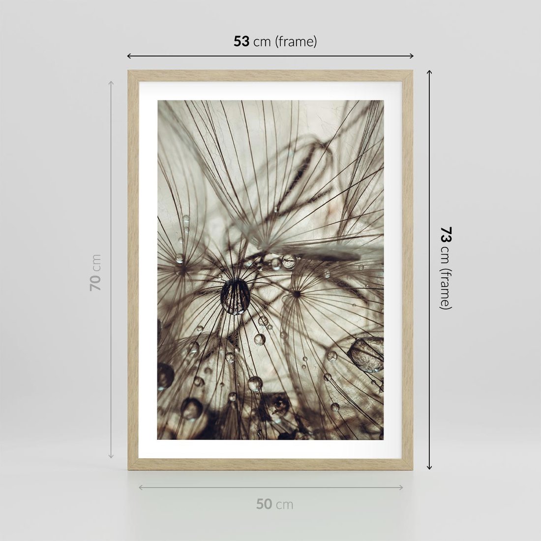 Plakat w ramie 50x70 - Lekkie dmuchawce - dmuchawce, krople - rama drewno