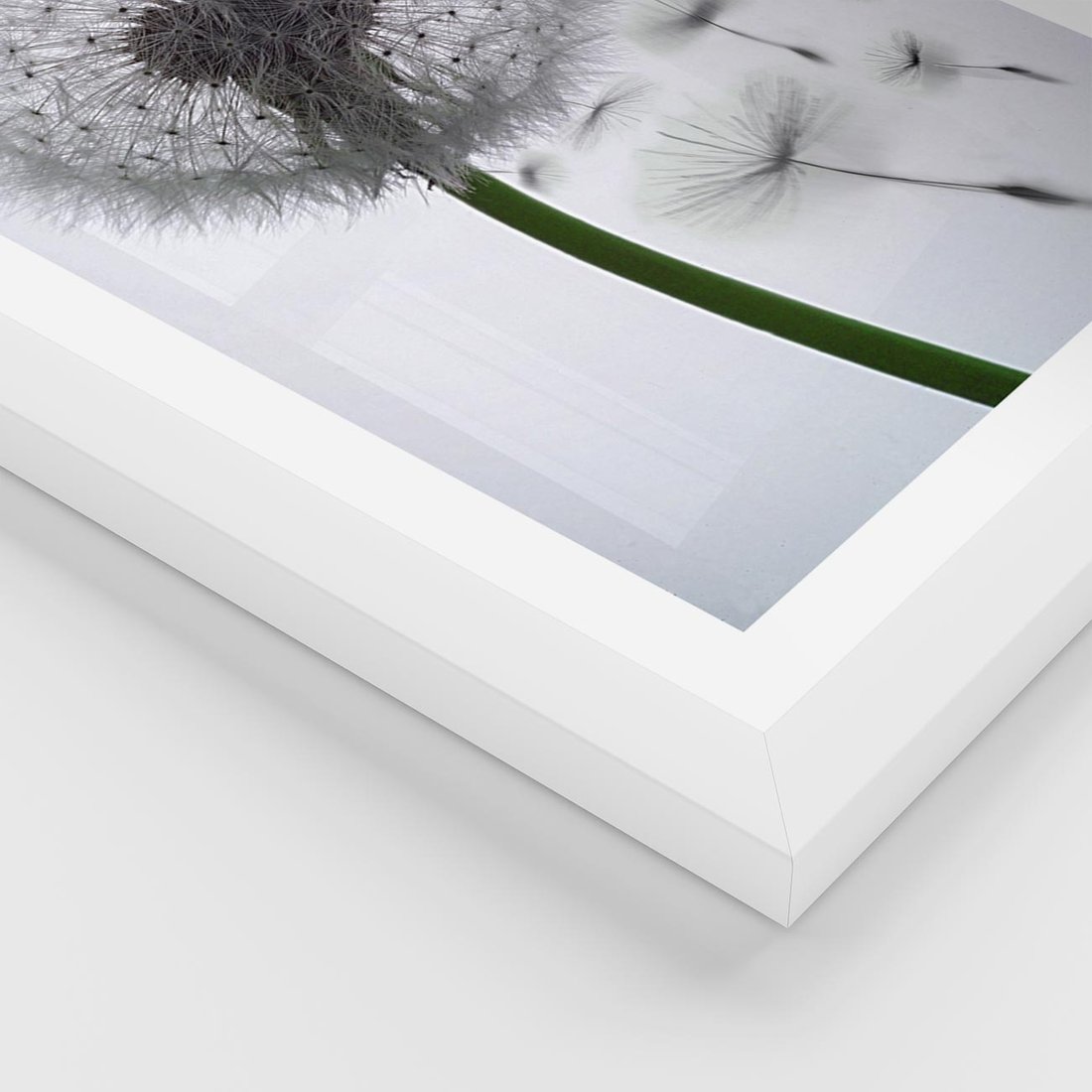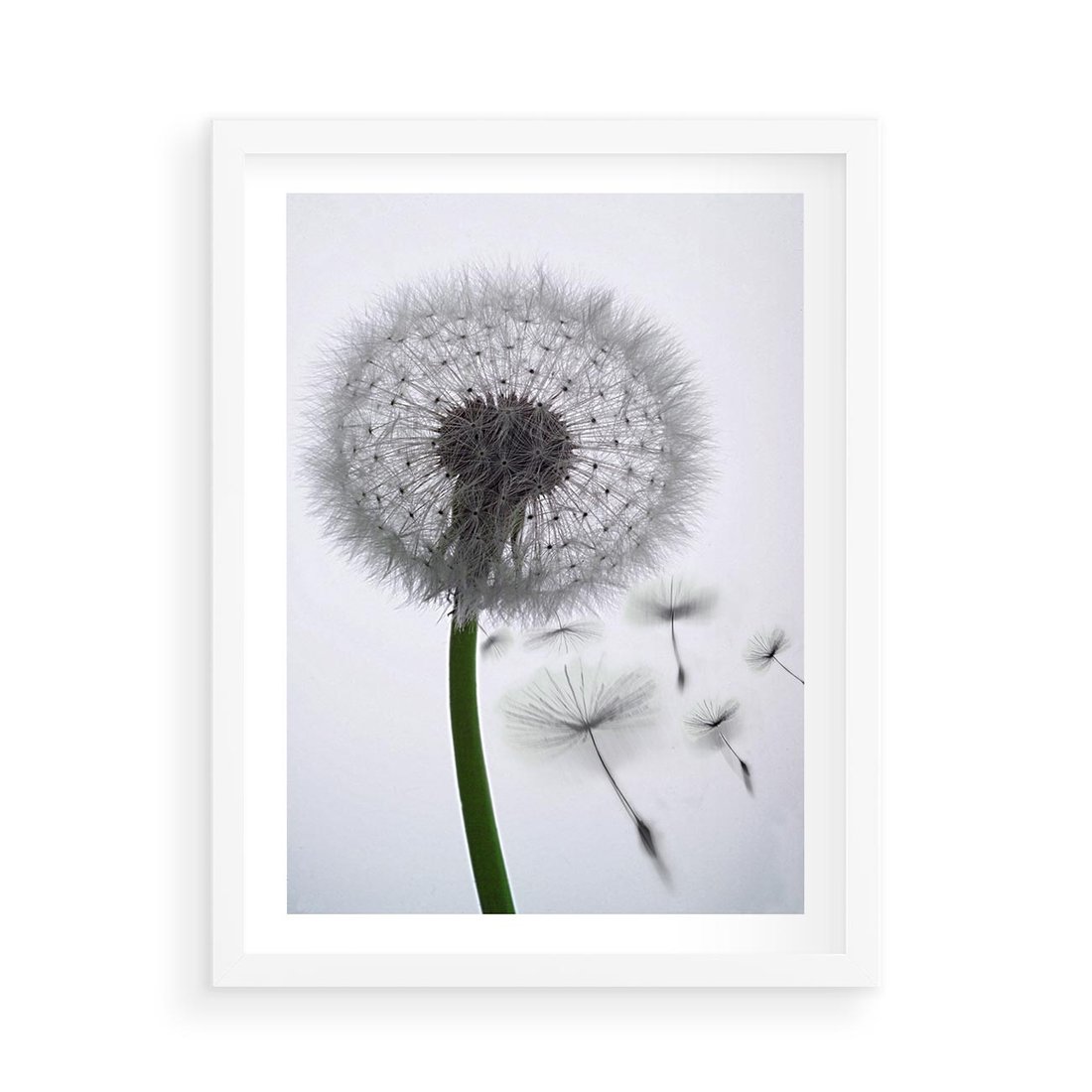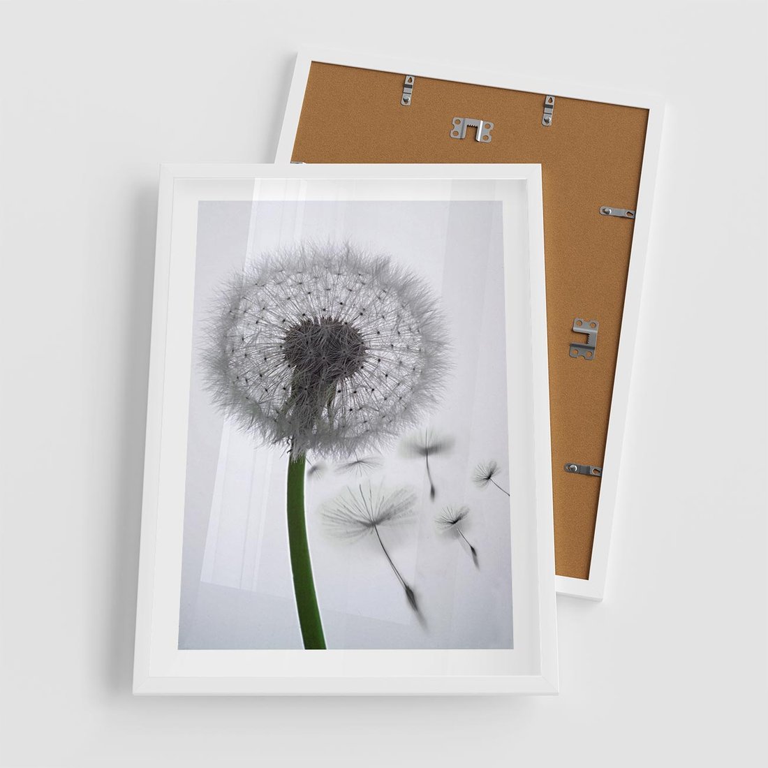Plakat w ramie 50x70 - Lekkość Przemijania - dmuchawiec, makro - rama biała