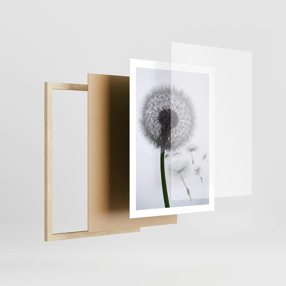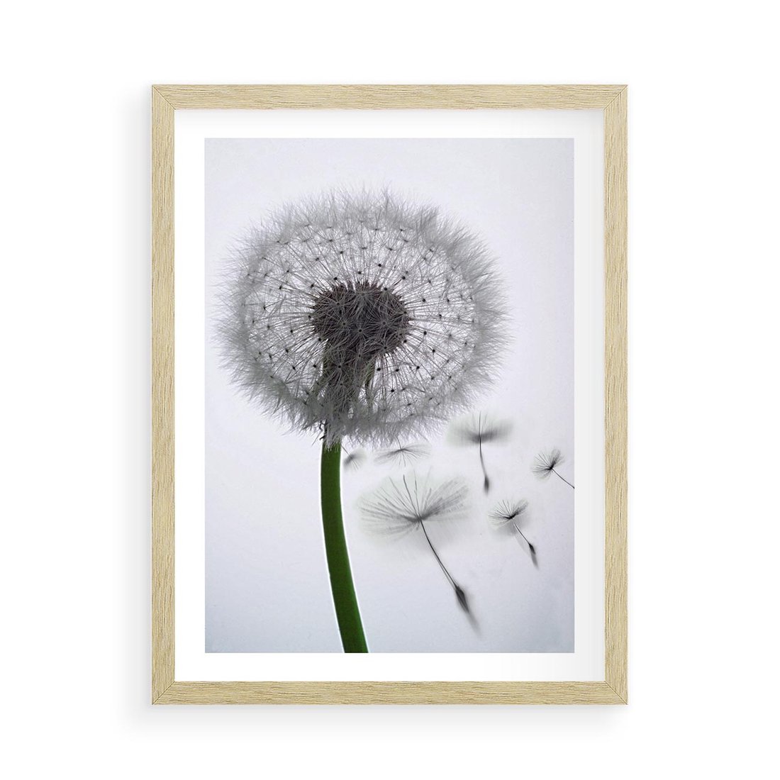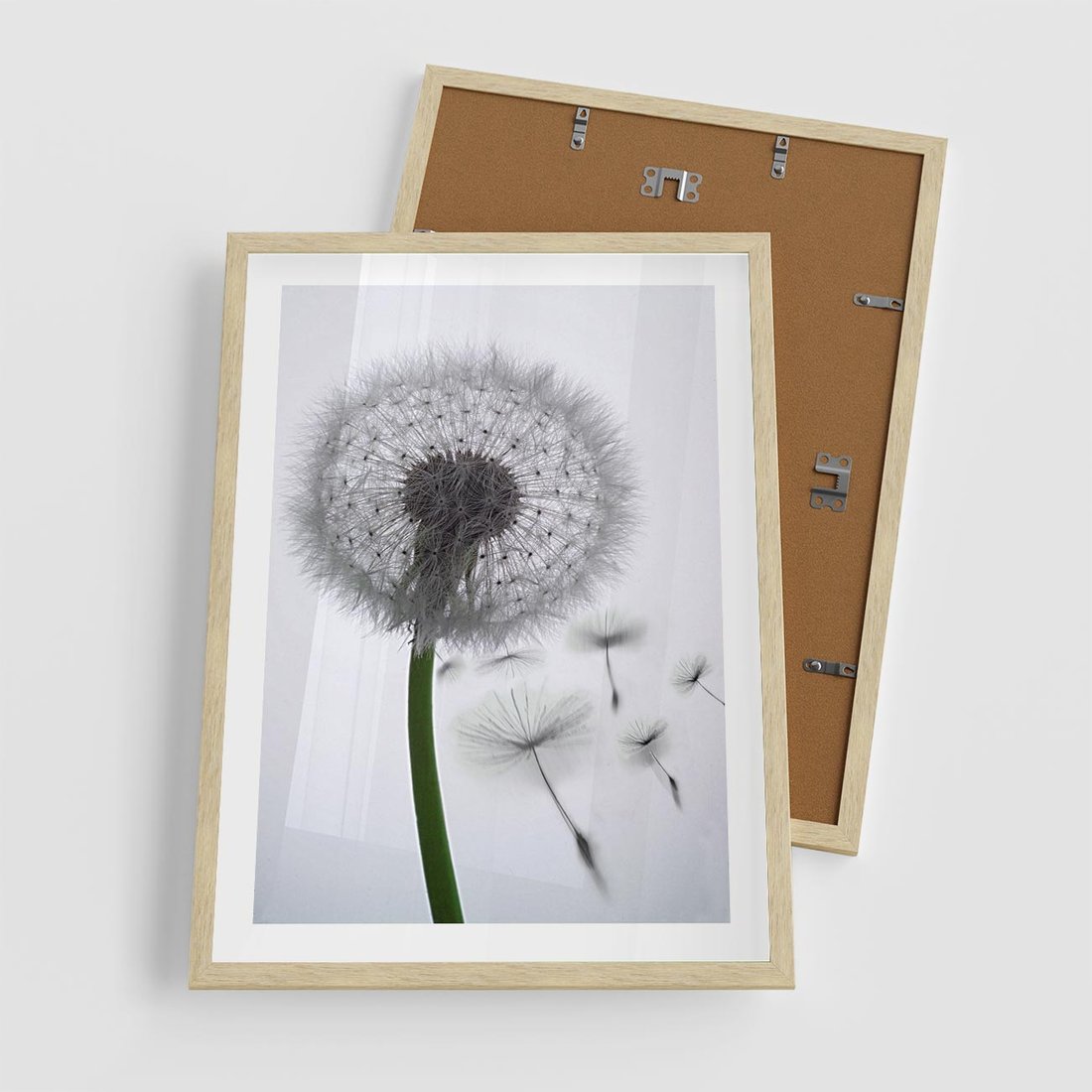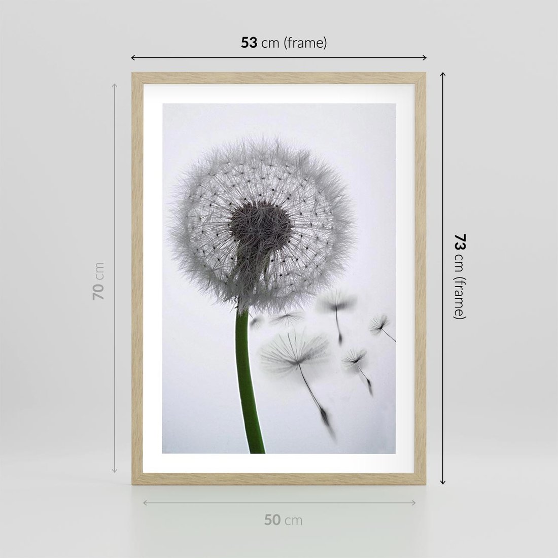 Plakat w ramie 50x70 - Lekkość Przemijania - dmuchawiec, makro - rama drewno