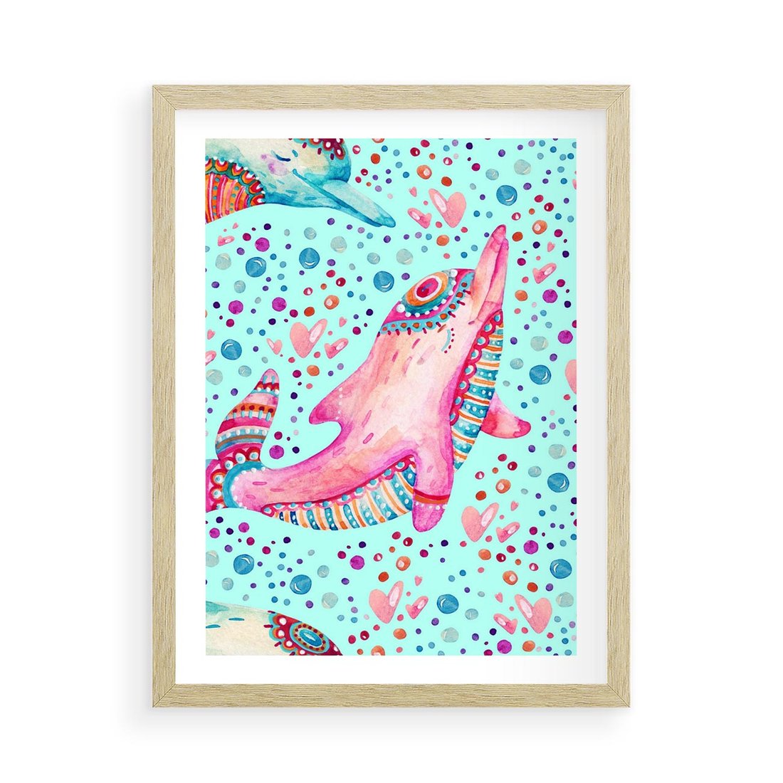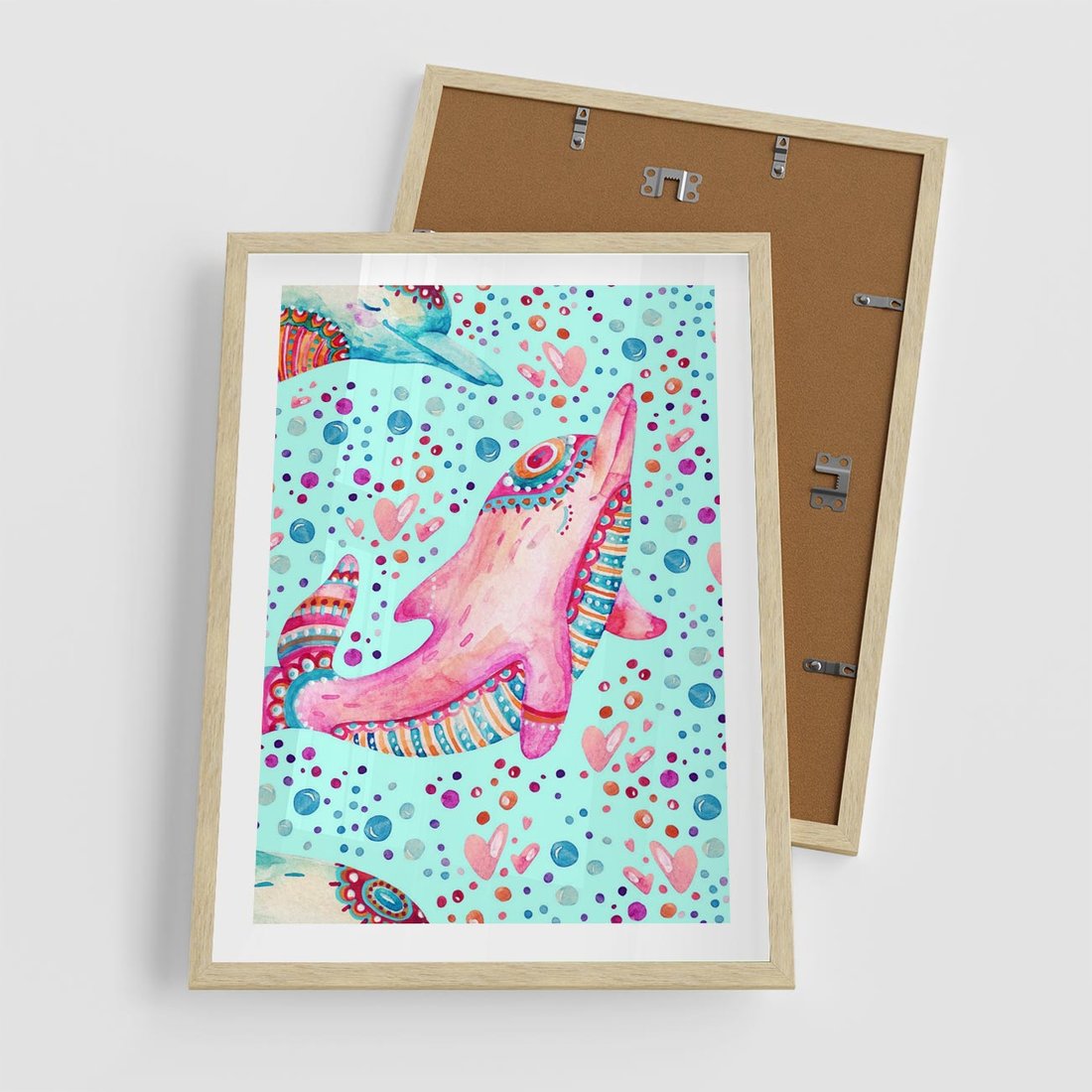Plakat w ramie 50x70 - Lekkość W Ruchu - delfin, akwarela - rama drewno