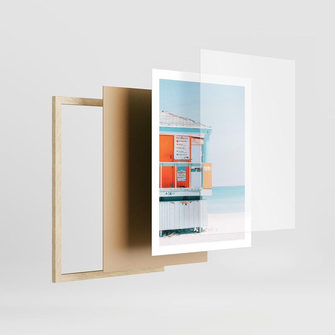 Plakat w ramie 50x70 - Letnia Idylla - plaża, domek na plaży - rama drewno