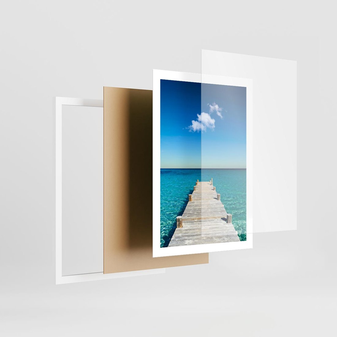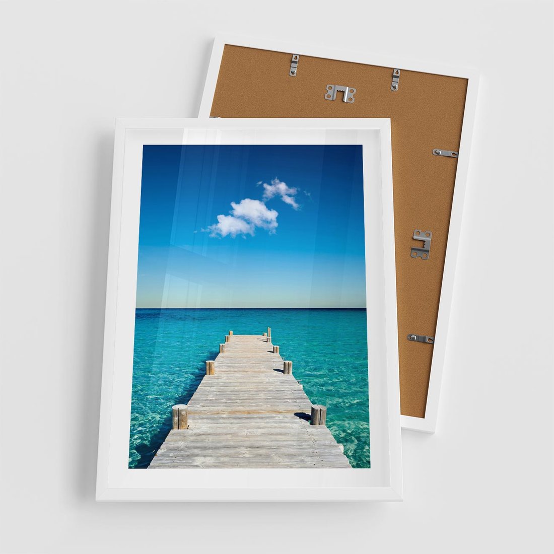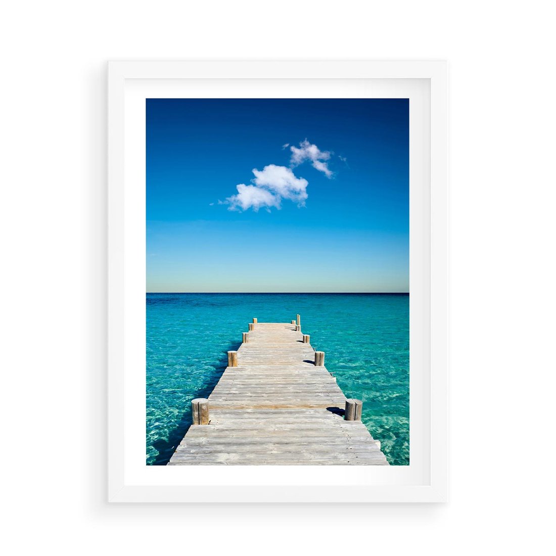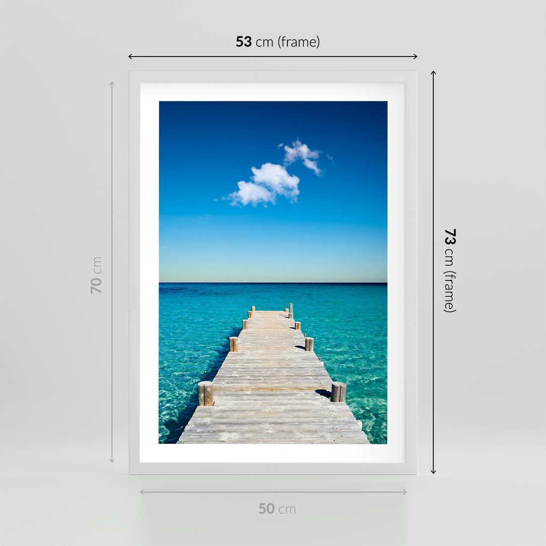 Plakat w ramie 50x70 - Letnie Morskie Uczucie - morze, pomost - rama biała