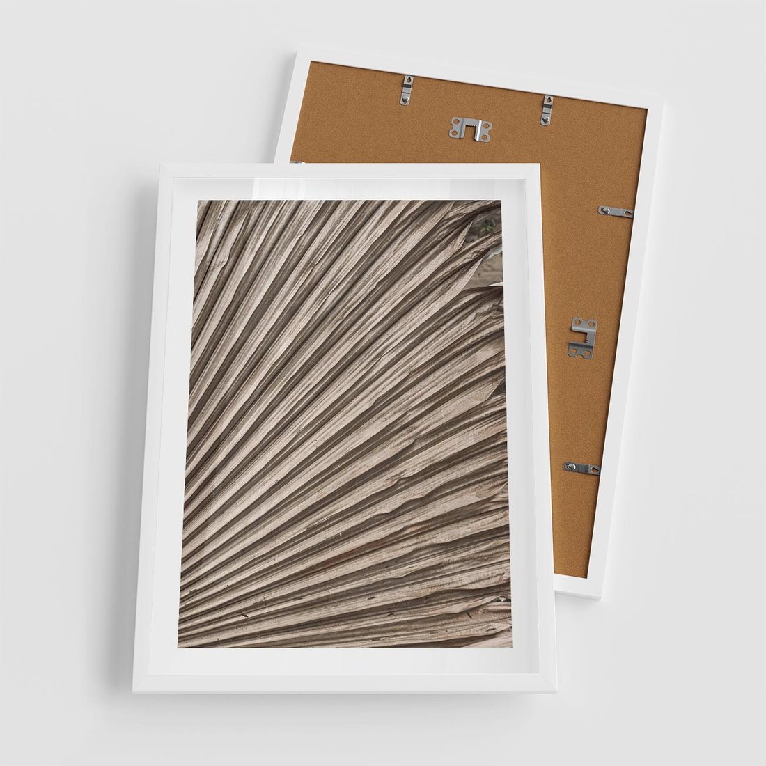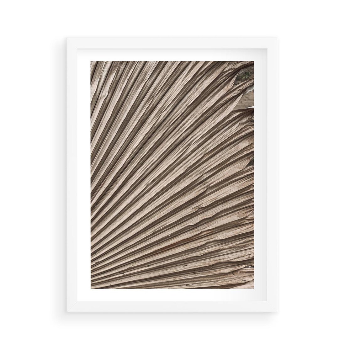 Plakat w ramie 50x70 - Liść Palmy w Wyjątkowej Kompozycji - suchy liść palmy, boho styl - rama biała