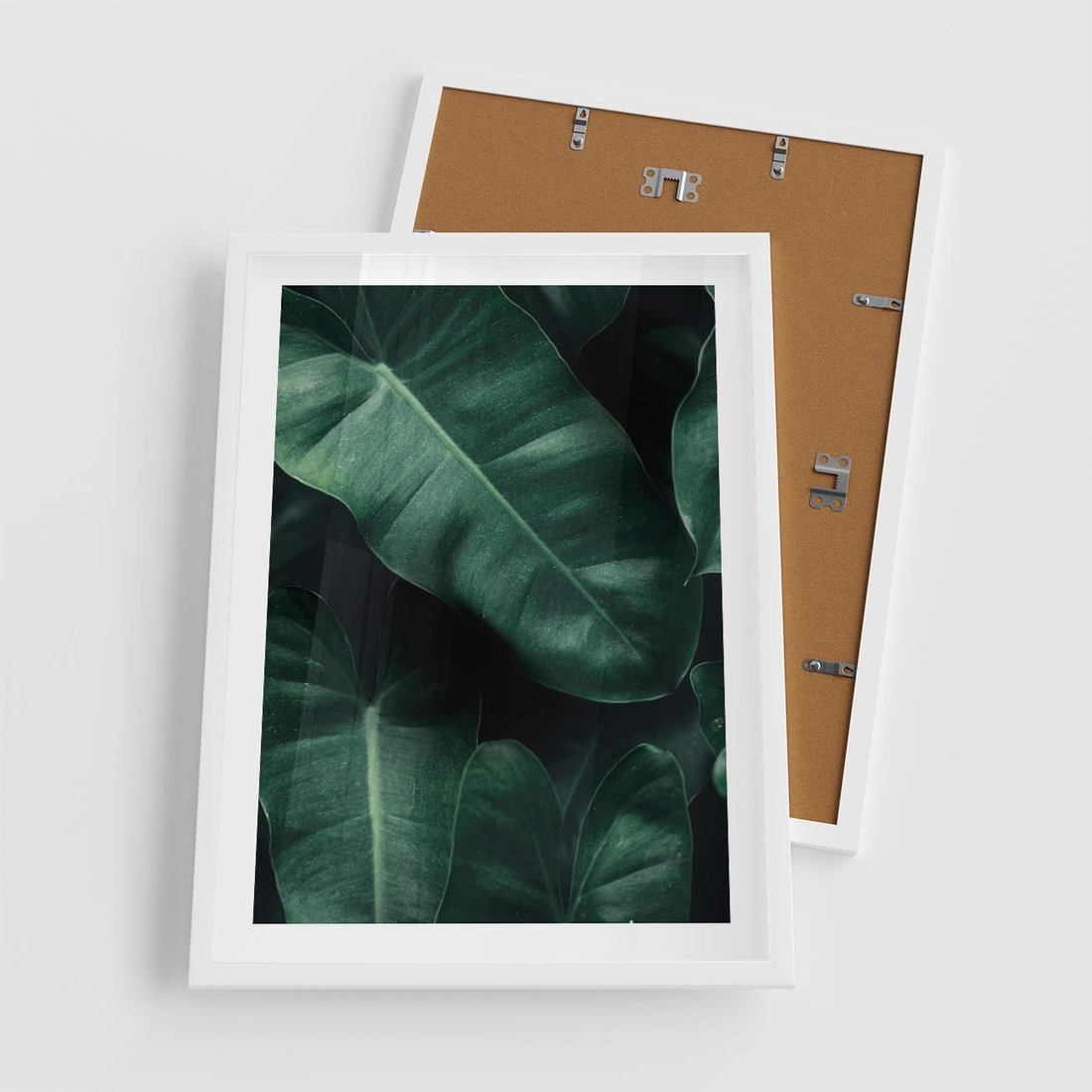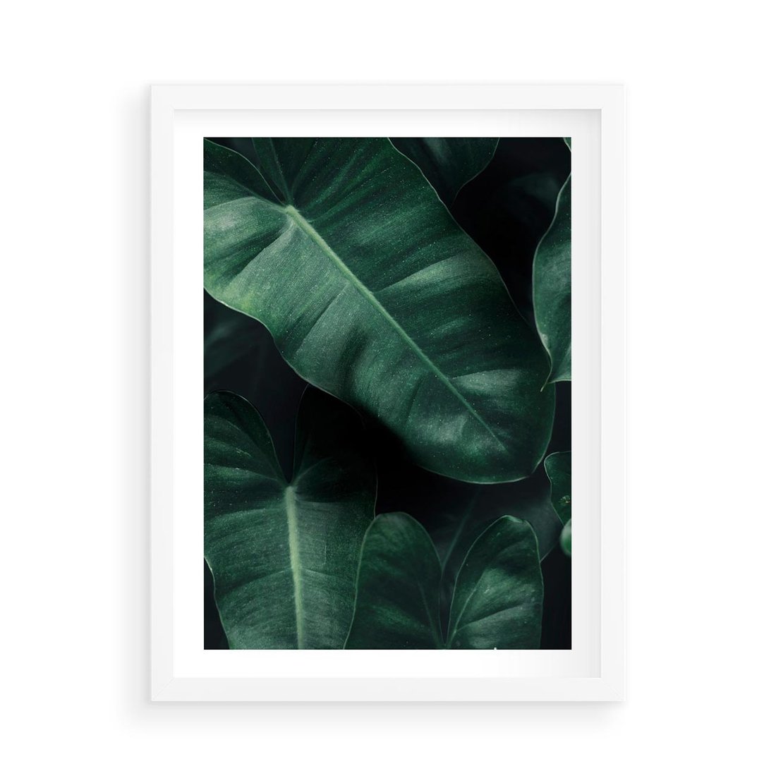 Plakat w ramie 50x70 - Liście Bananowca - minimalizm, zielone liście bananowca - rama biała