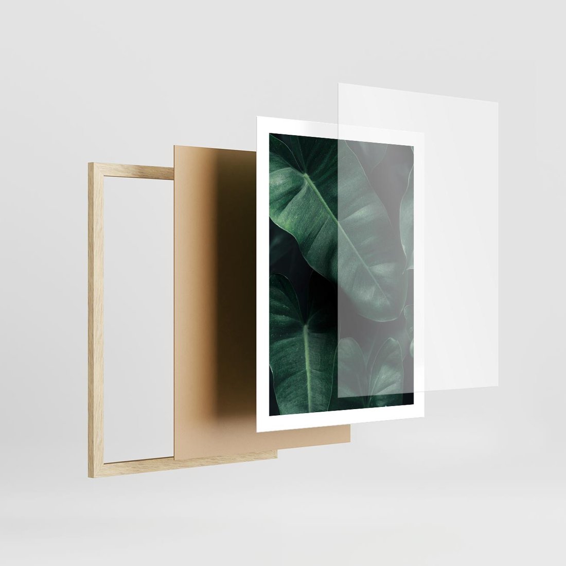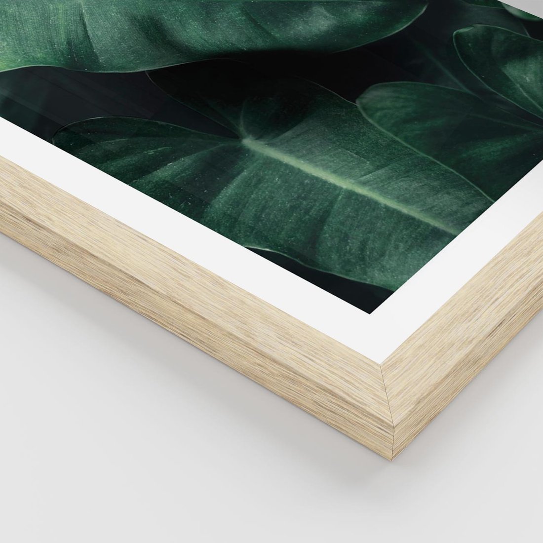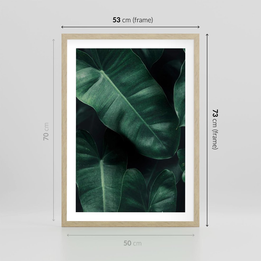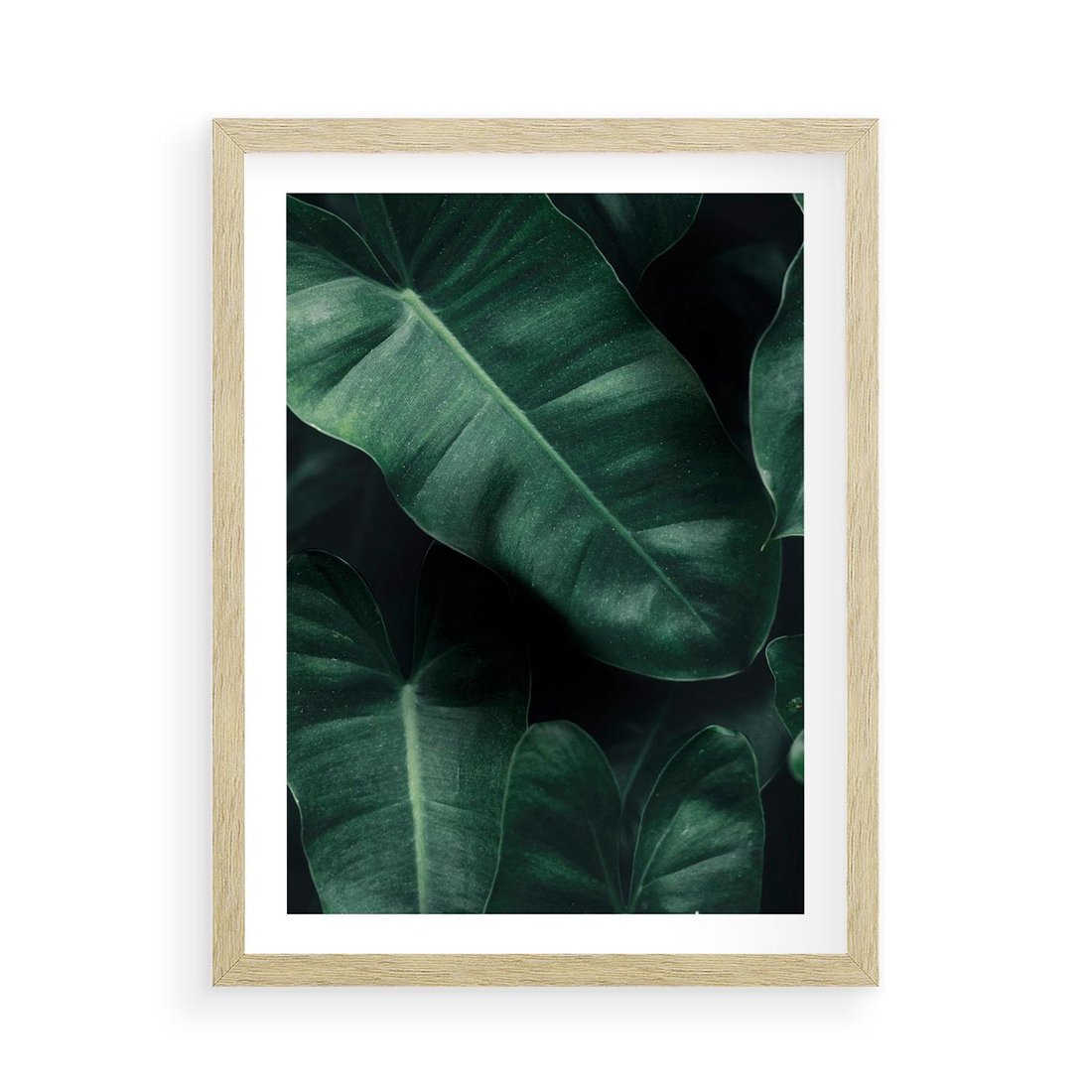 Plakat w ramie 50x70 - Liście Bananowca - minimalizm, zielone liście bananowca - rama drewno