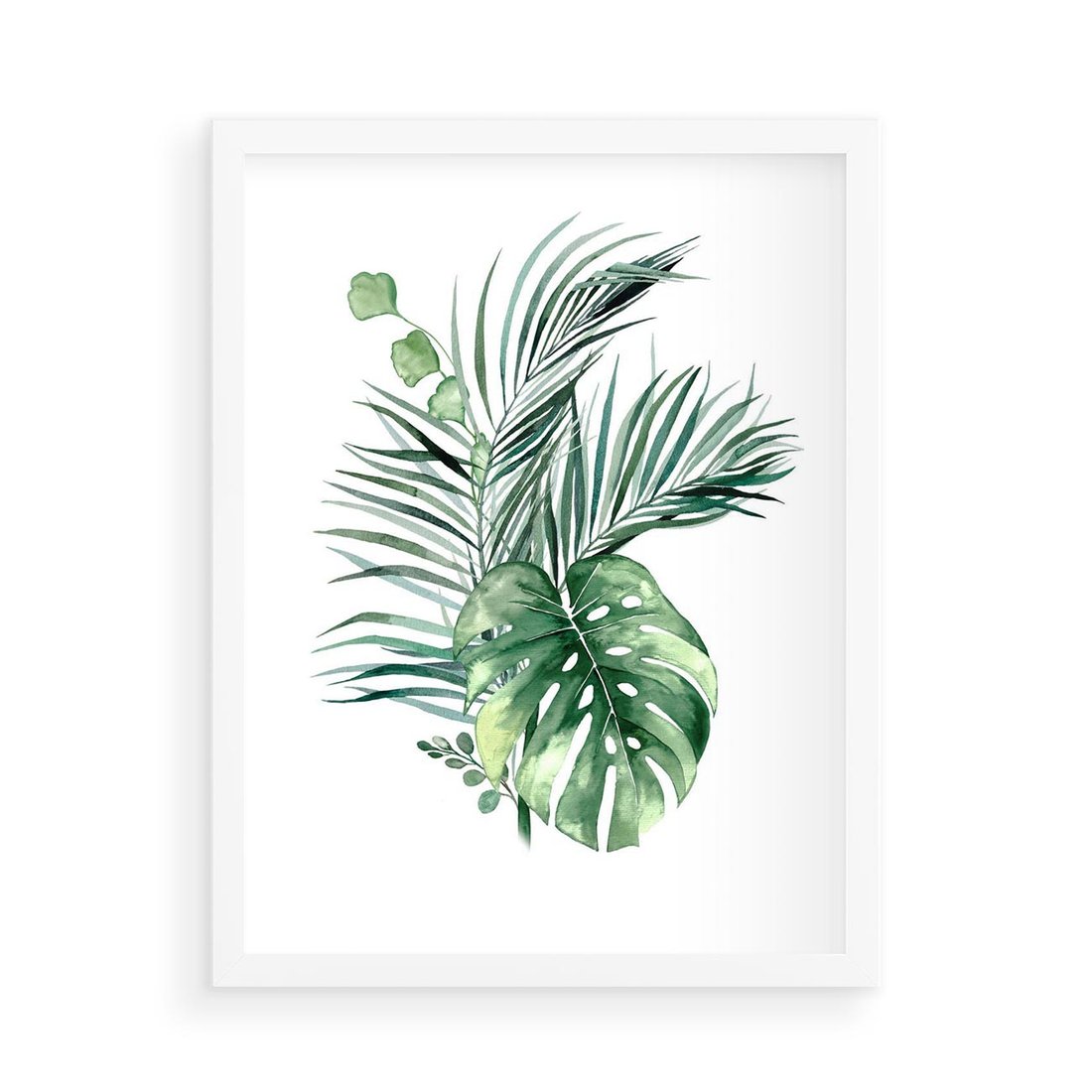 Plakat w ramie 50x70 - Liście i Życie: Akwarelowa Oaza - akwarelowy obrazek, pamy - rama biała
