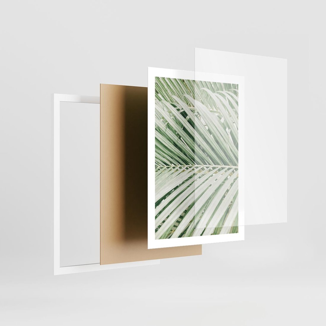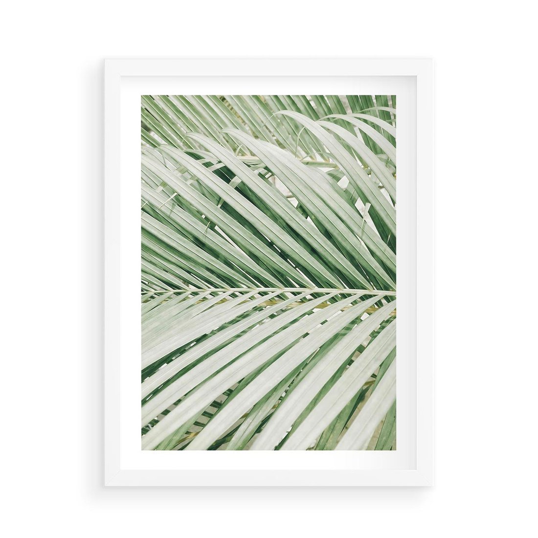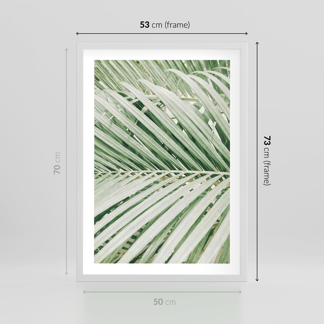 Plakat w ramie 50x70 - Liście Palmy: Egzotyczna Grafika - palma, liście palmy - rama biała