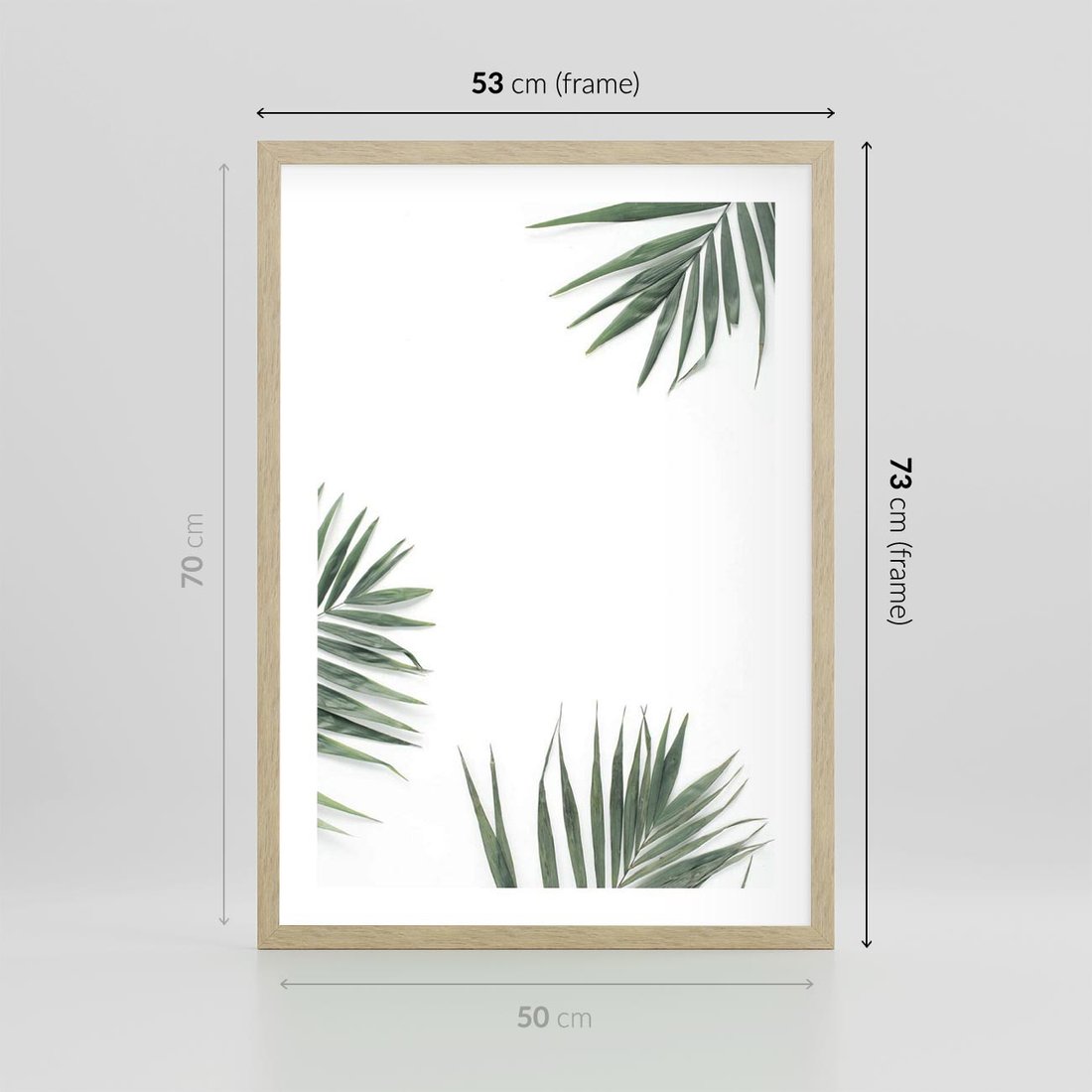 - Plakat w ramie 50x70 - Liście Palmy na Czystym Tle