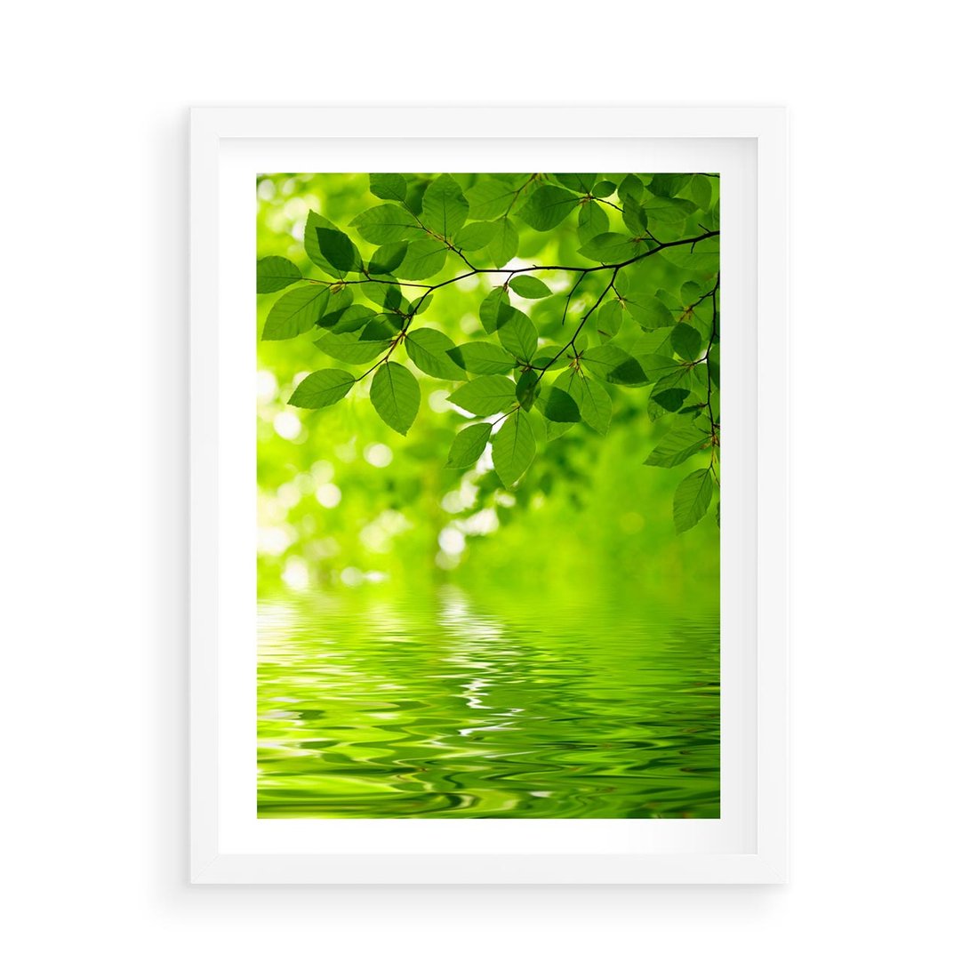 Plakat w ramie 50x70 - Liście w Wodzie - liście, woda - rama biała
