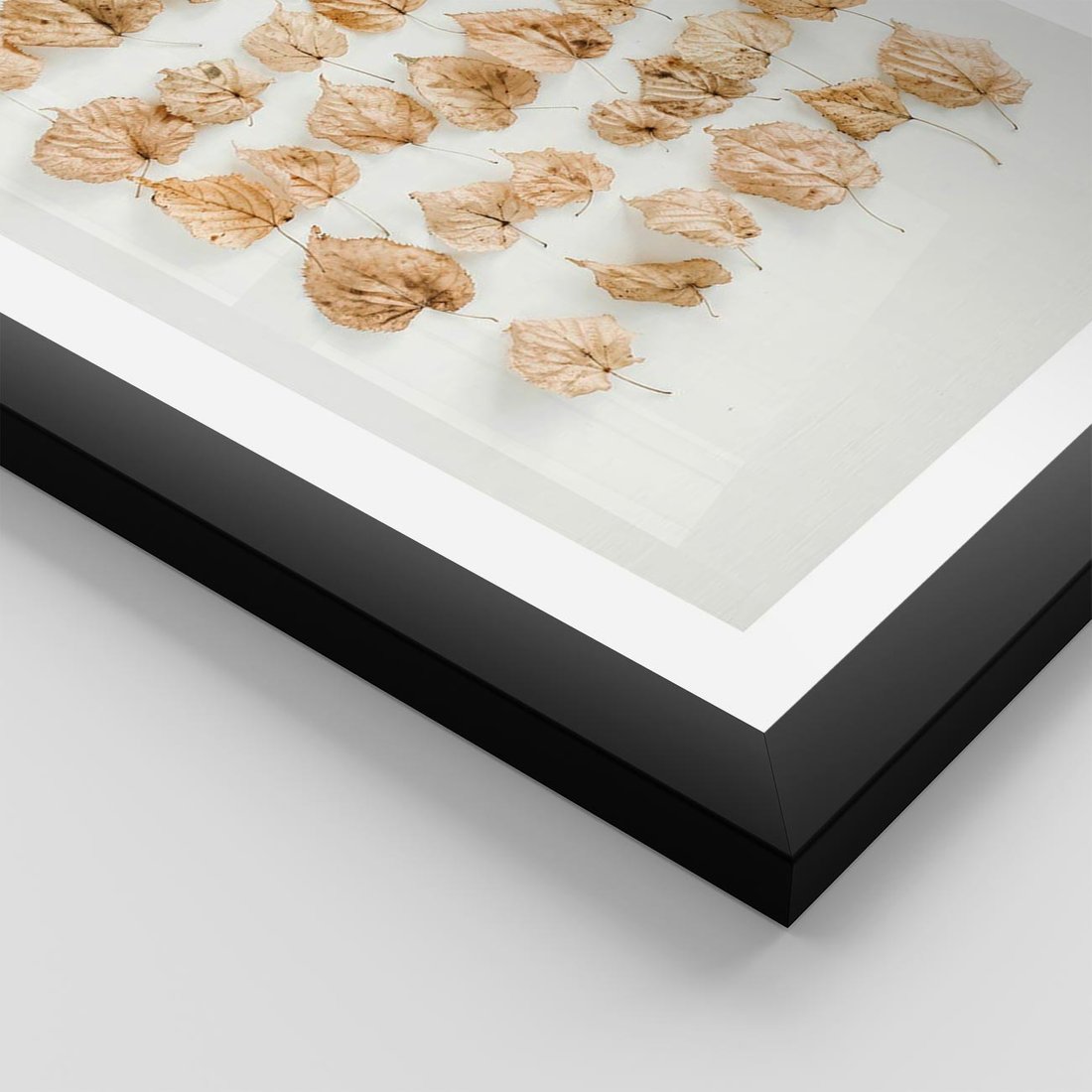 Plakat w ramie 50x70 - Liście Złotego Sezonu - kompozycja z suchych żółtych liści - rama czarna