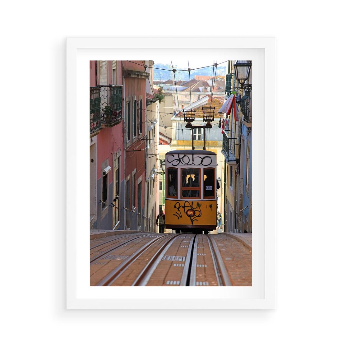 Plakat w ramie 50x70 - Lizbońskie tramwaje - podróż w czasie - Lizbona, tramwaj - rama biała