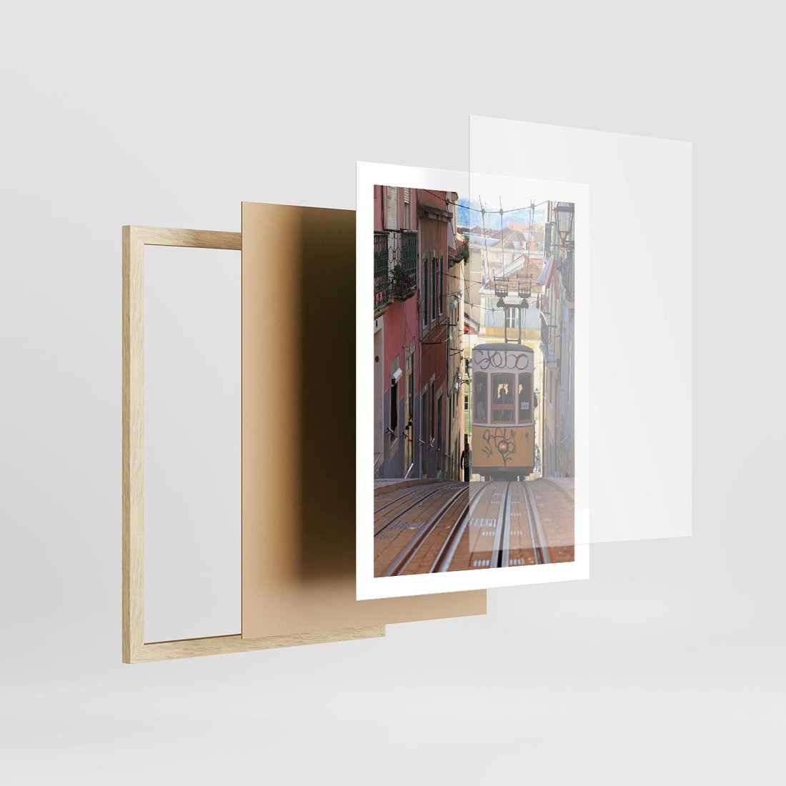 Plakat w ramie 50x70 - Lizbońskie tramwaje - podróż w czasie - Lizbona, tramwaj - rama drewno