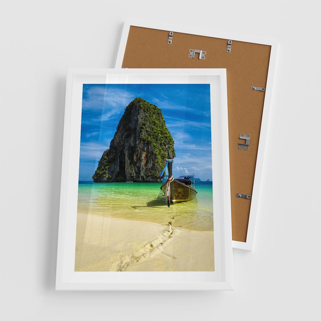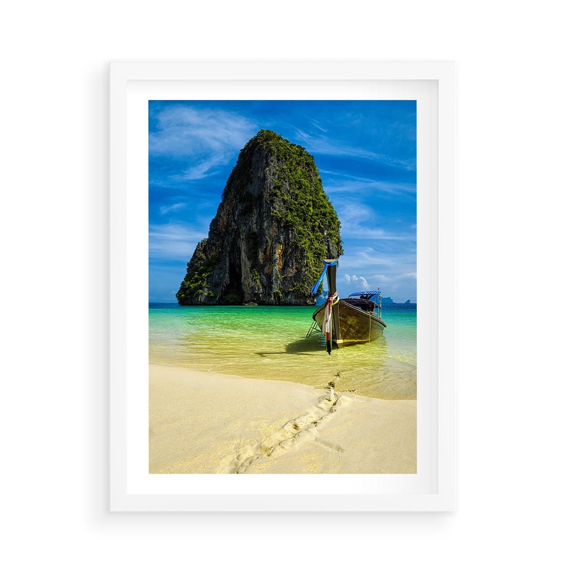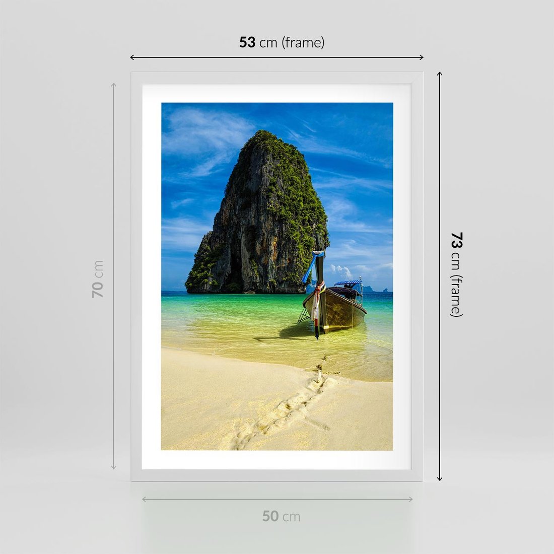 Plakat w ramie 50x70 - Łódź nad Morzem - łodź, morze - rama biała