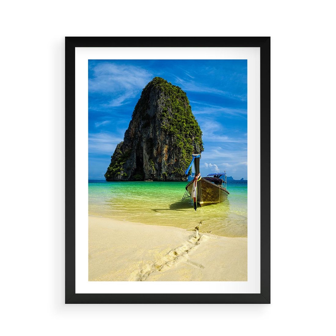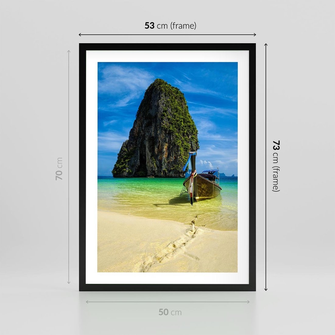 Plakat w ramie 50x70 - Łódź nad Morzem - łodź, morze - rama czarna