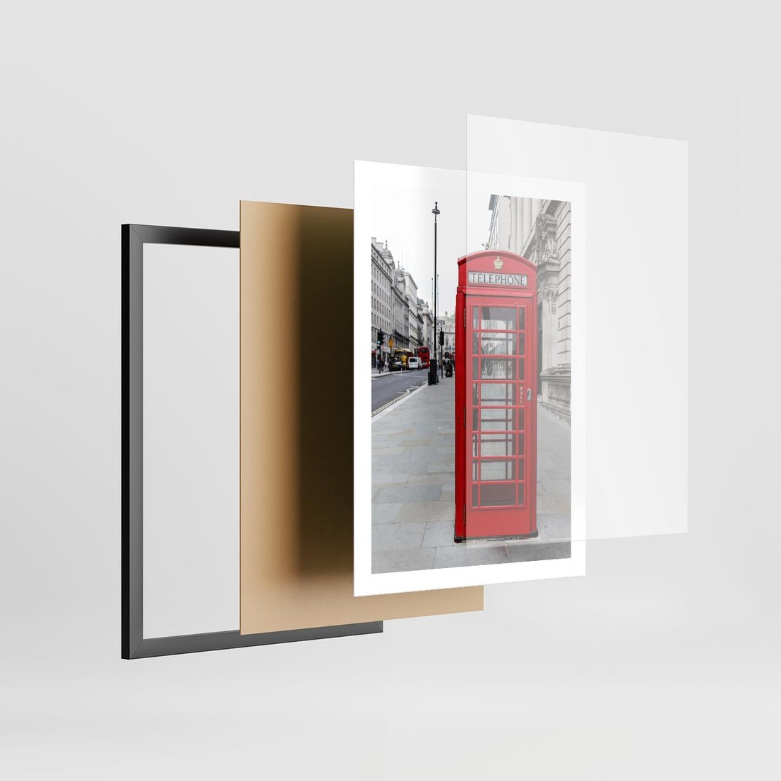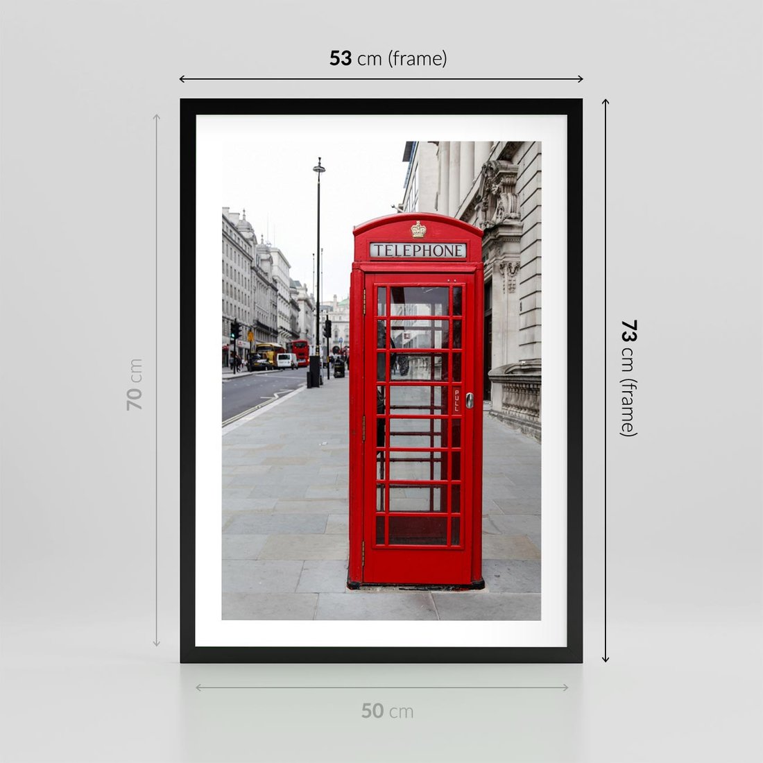 Plakat w ramie 50x70 - Londyńska budka w perspektywie - budka, Londyn - rama czarna