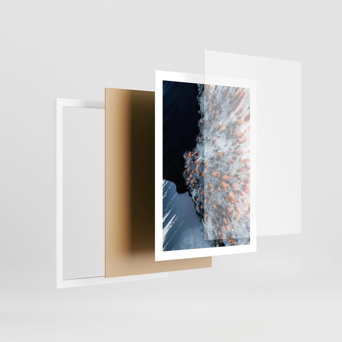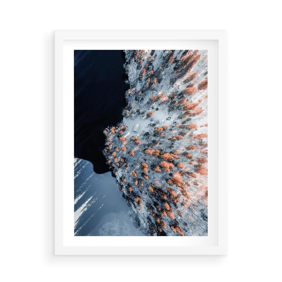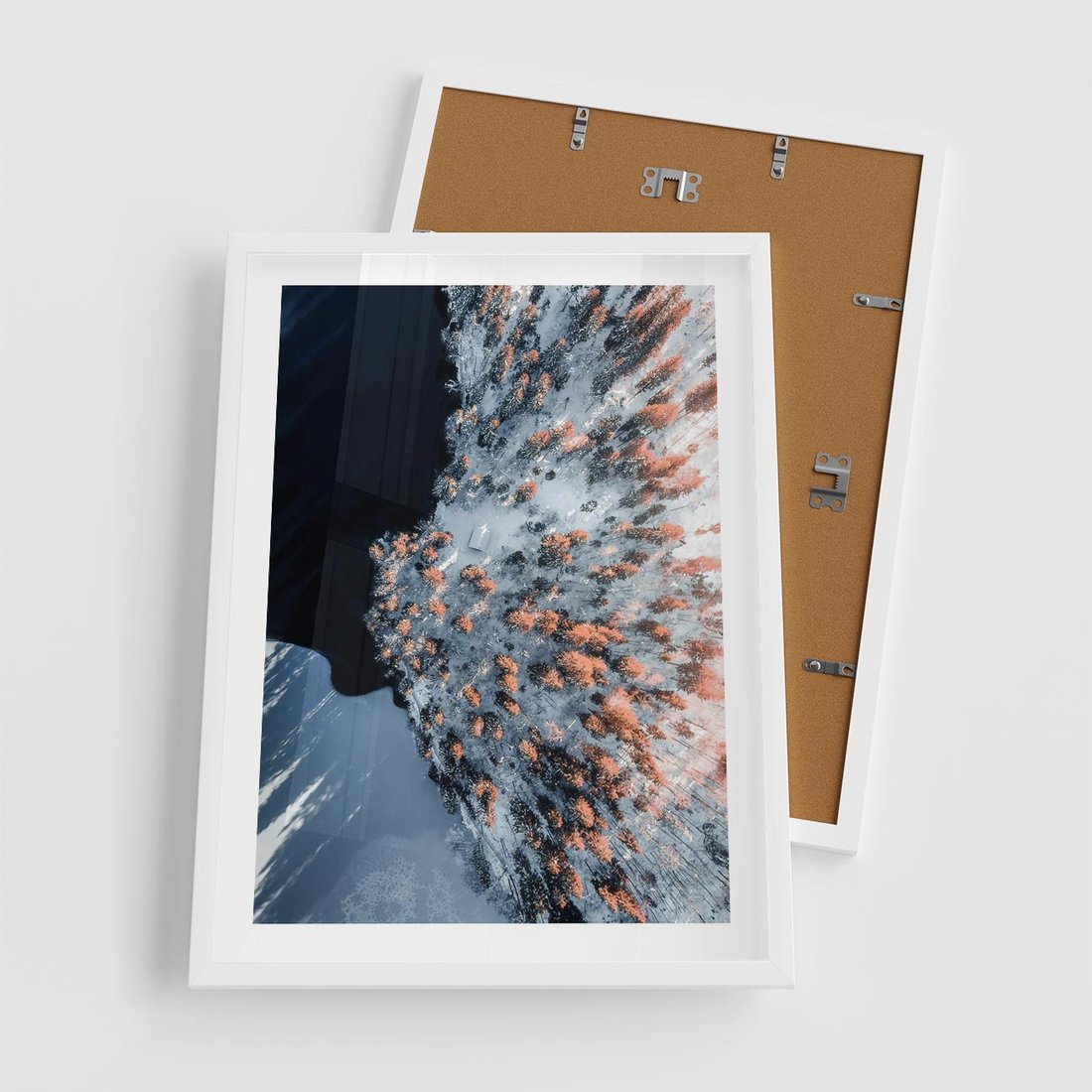 Plakat w ramie 50x70 - Lot Ptaka - zima, zimowy krajobraz - rama biała