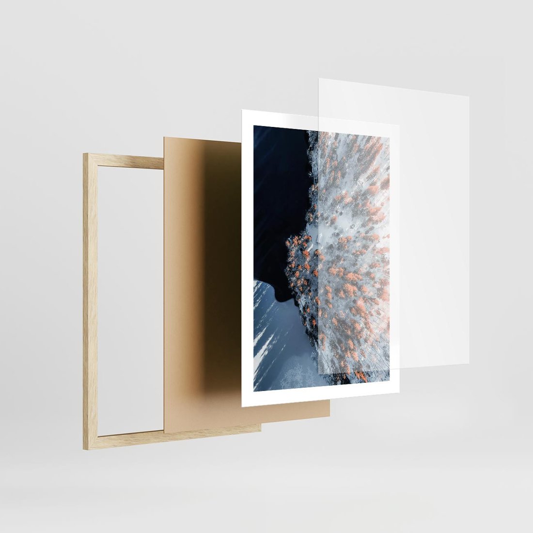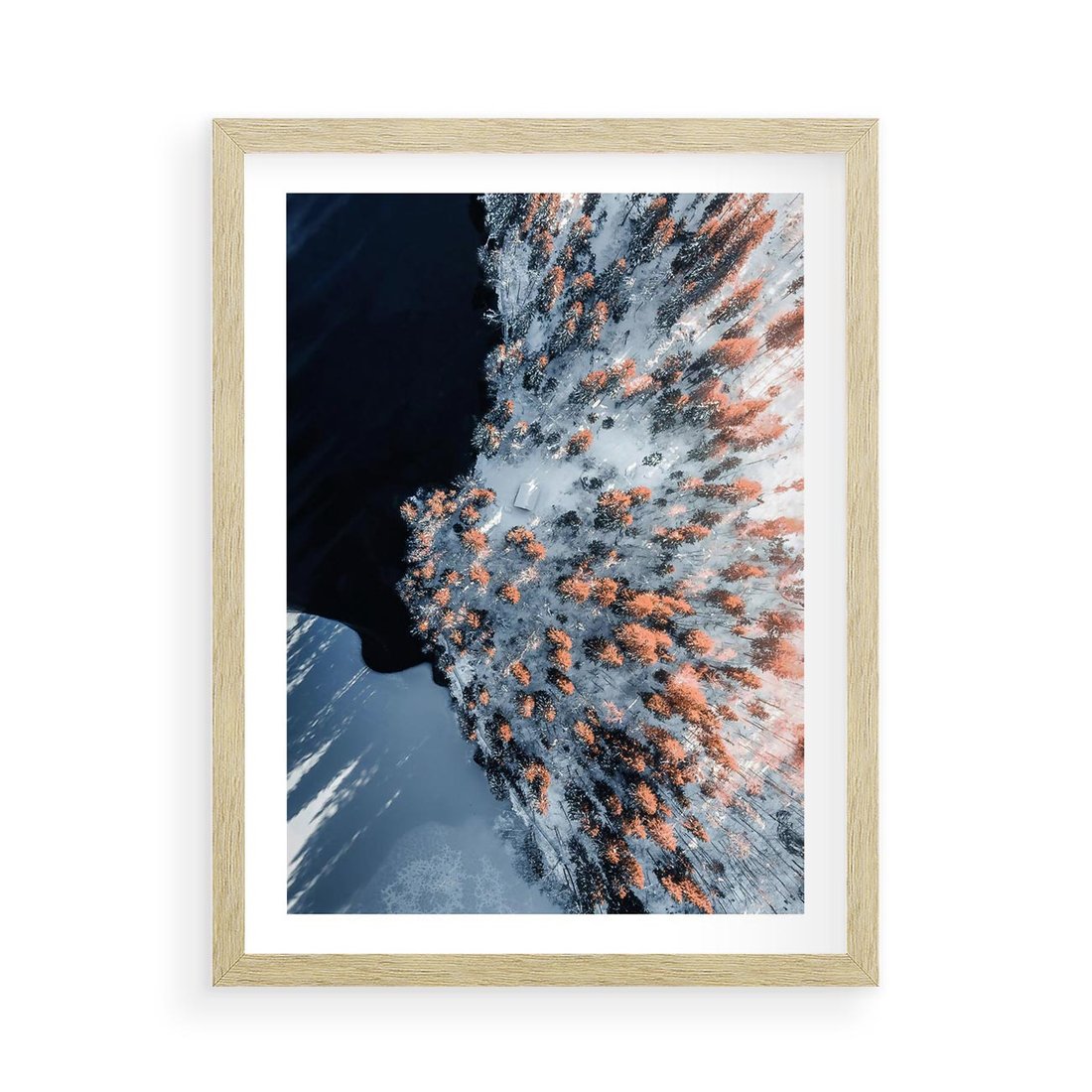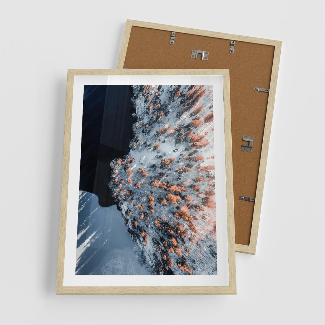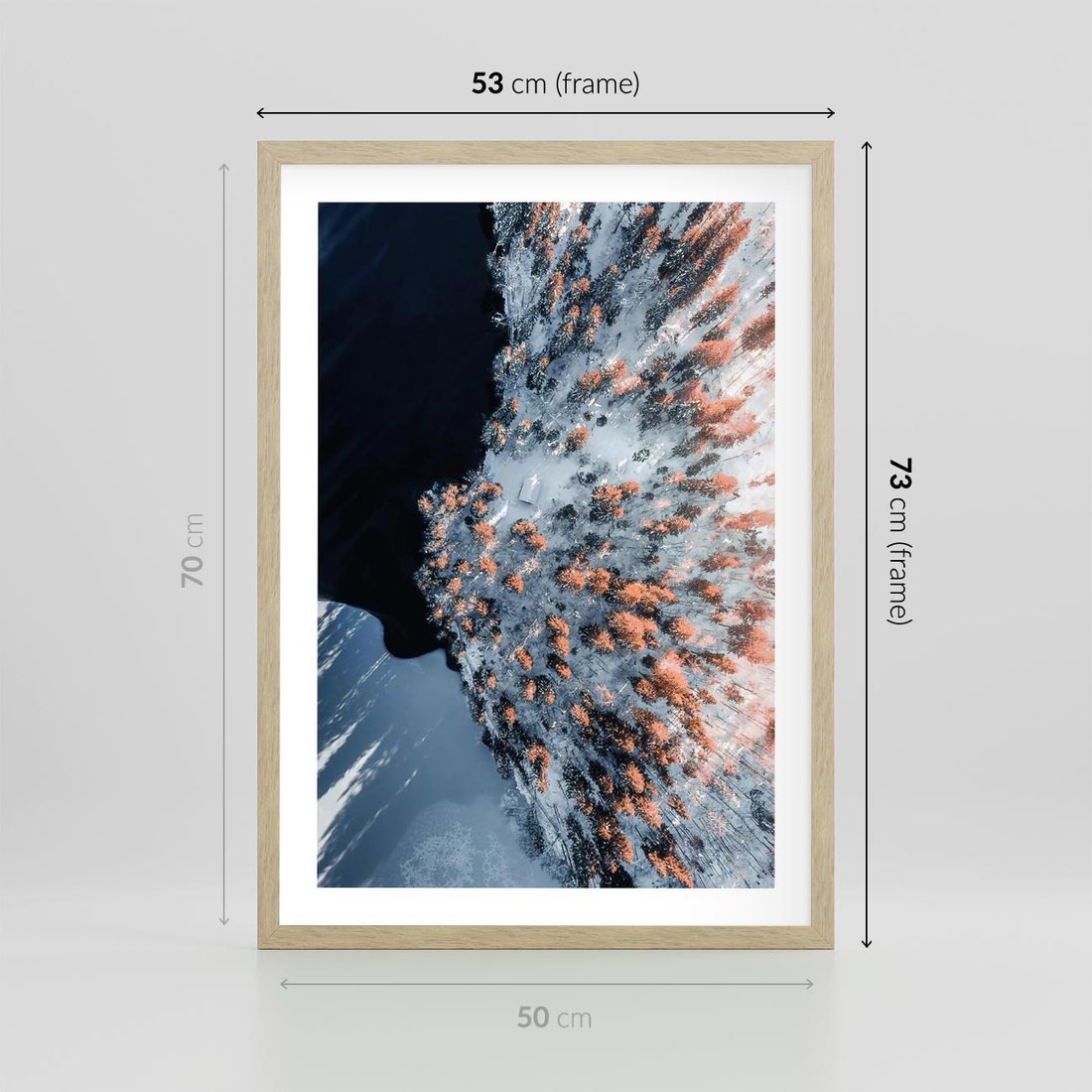 Plakat w ramie 50x70 - Lot Ptaka - zima, zimowy krajobraz - rama drewno
