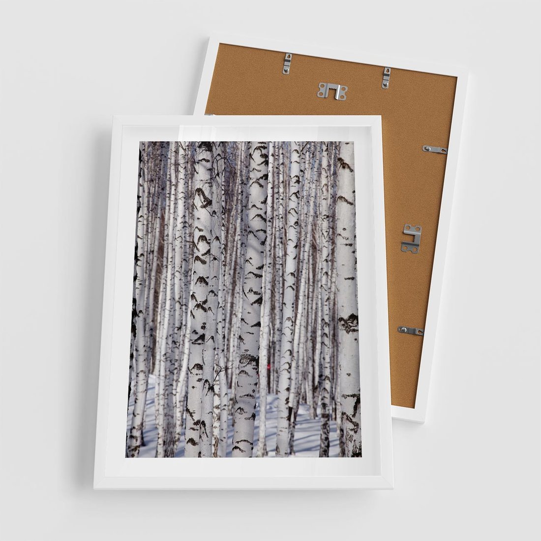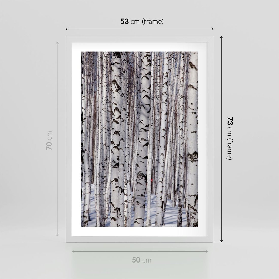Plakat w ramie 50x70 - Lśniące Brzozy - brzozy, las - rama biała