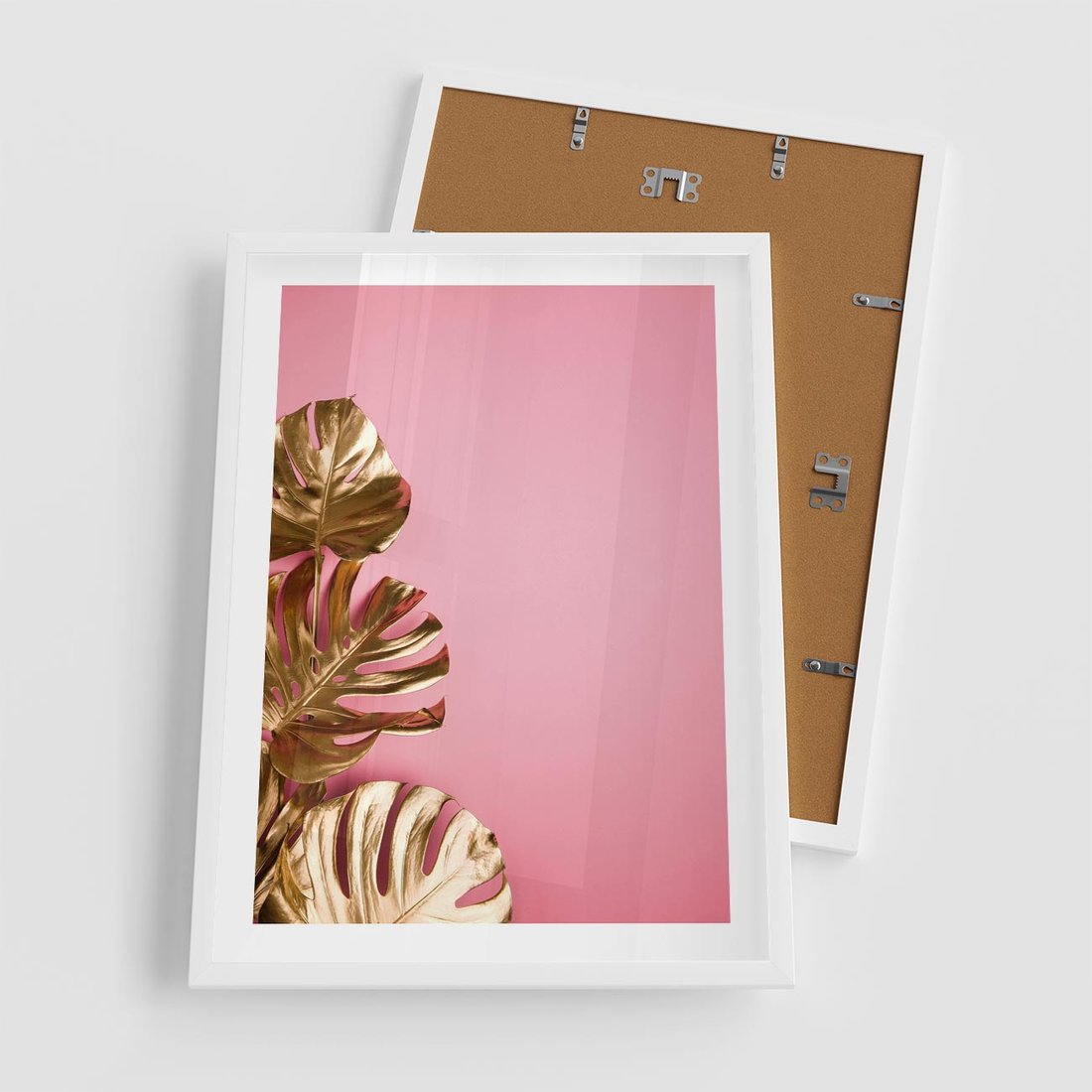 Plakat w ramie 50x70 - Luksusowa Elegancja - złote, liście - rama biała