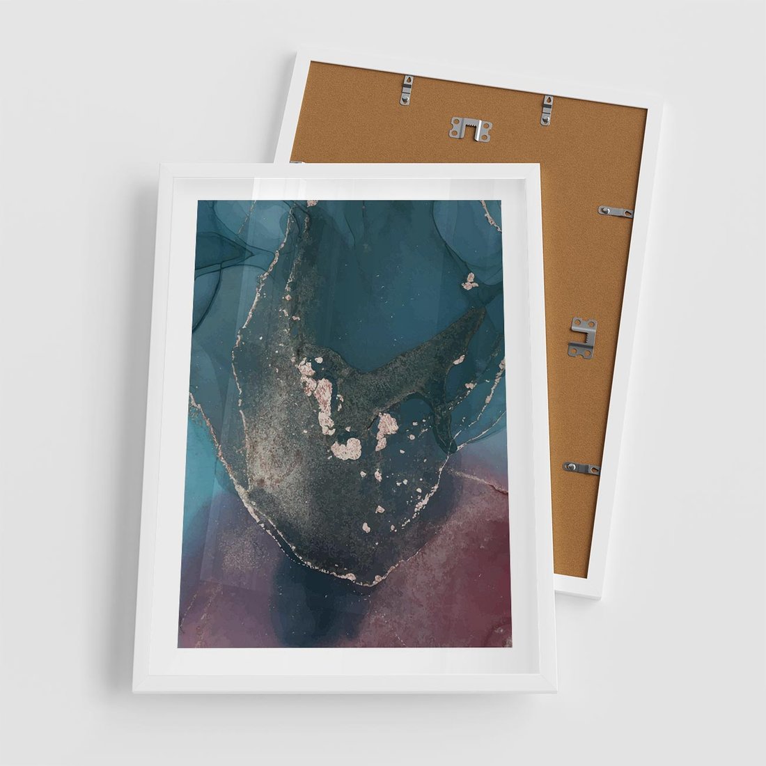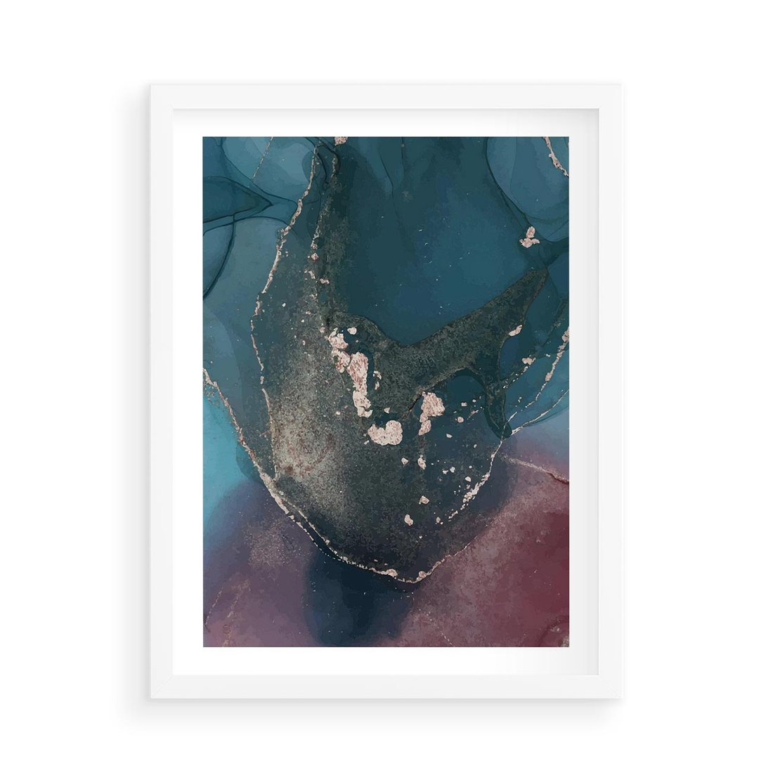 Plakat w ramie 50x70 - Luksusowy Kontrast - marmur, granat i fiolet - rama biała