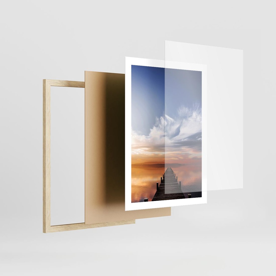 Plakat w ramie 50x70 - Magia Chwili - pomost, zachód - rama drewno